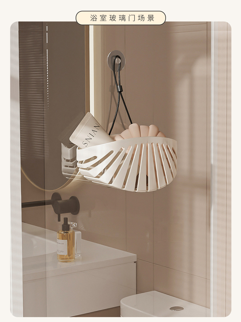 끈이 달린 크림색 쉘 싱크대 걸이 가방, 펀치 없는 수도꼭지 배수구, 가정용 다기능 배수구 보관 바구니