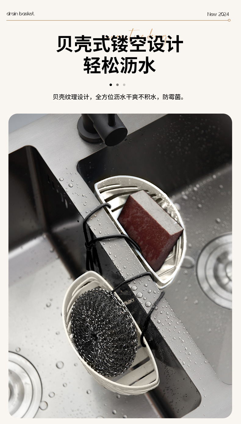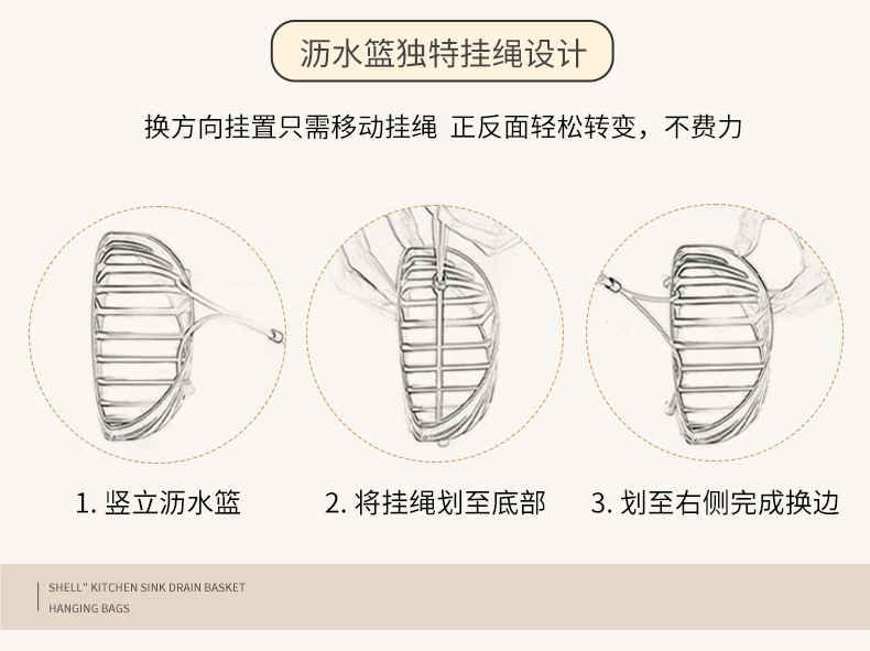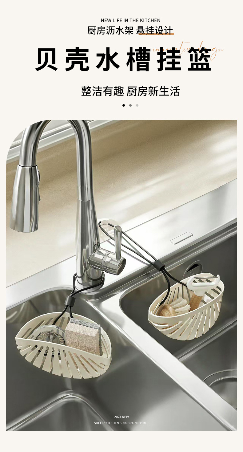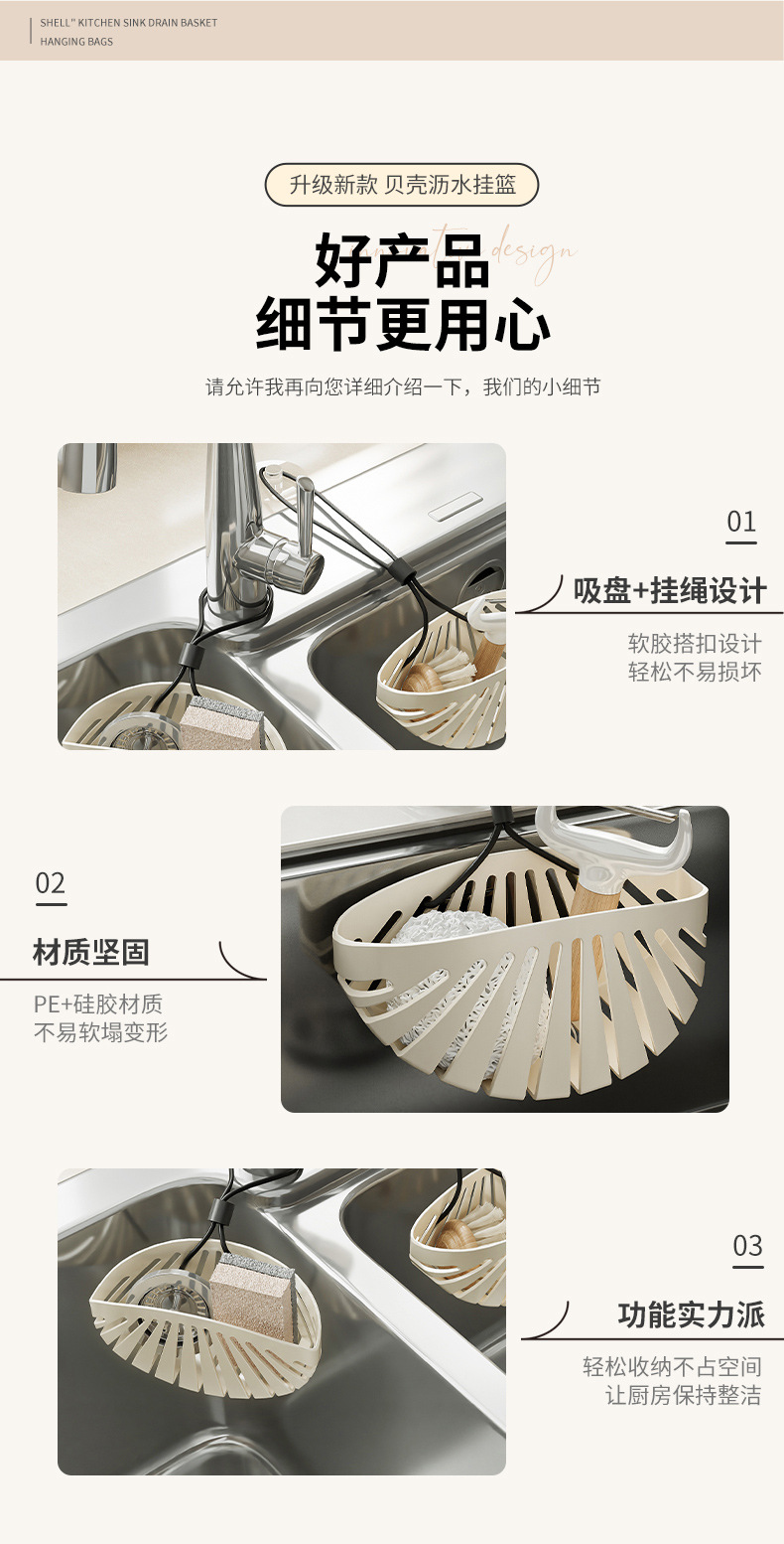 • 商品名称:贝壳形带挂绳厨房水槽沥水挂袋 海绵沥水收纳篮--奶白色