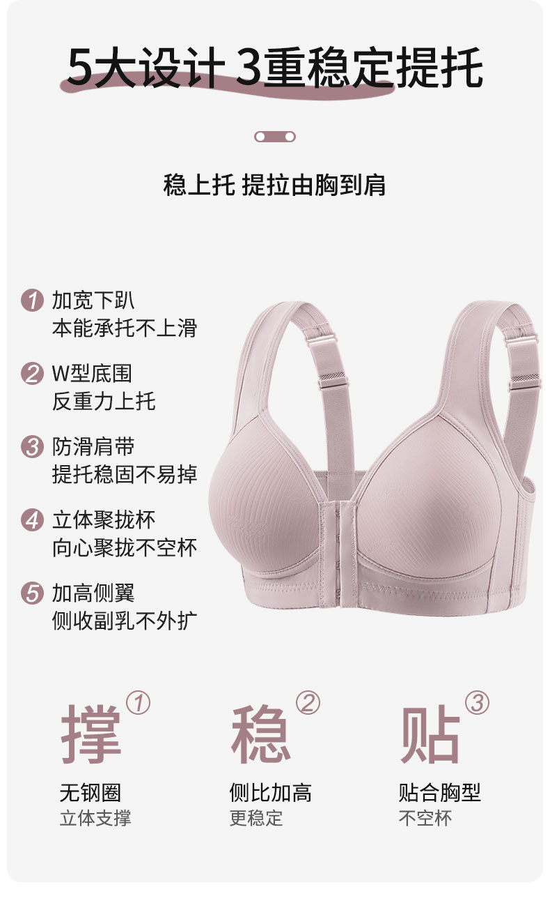 스틸 링 프론트 버클 브래지가없는 프론트 버클 풀 컵이있는 중년 및 노인 브래지어 편안한 액세서리 가슴 속옷 얇은 모아진 브래지어