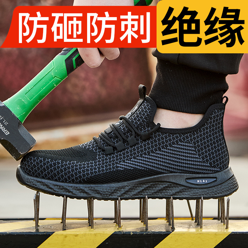 남성용 여름 노동 보호 신발, 충격 방지, 천공 방지, 통기성, 탈취제, 내마모성, 장시간 서 있어도 피곤하지 않은 안전 보호 건설 현장 작업화스토어 가기