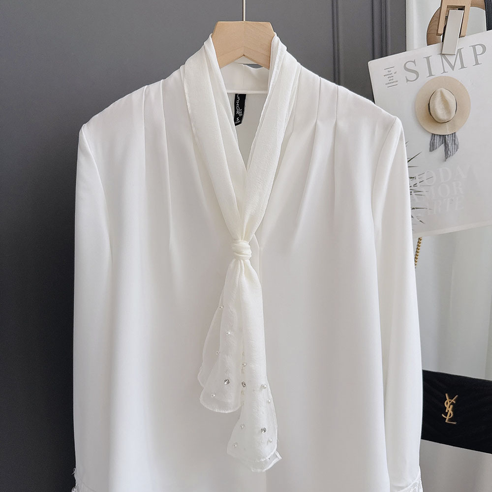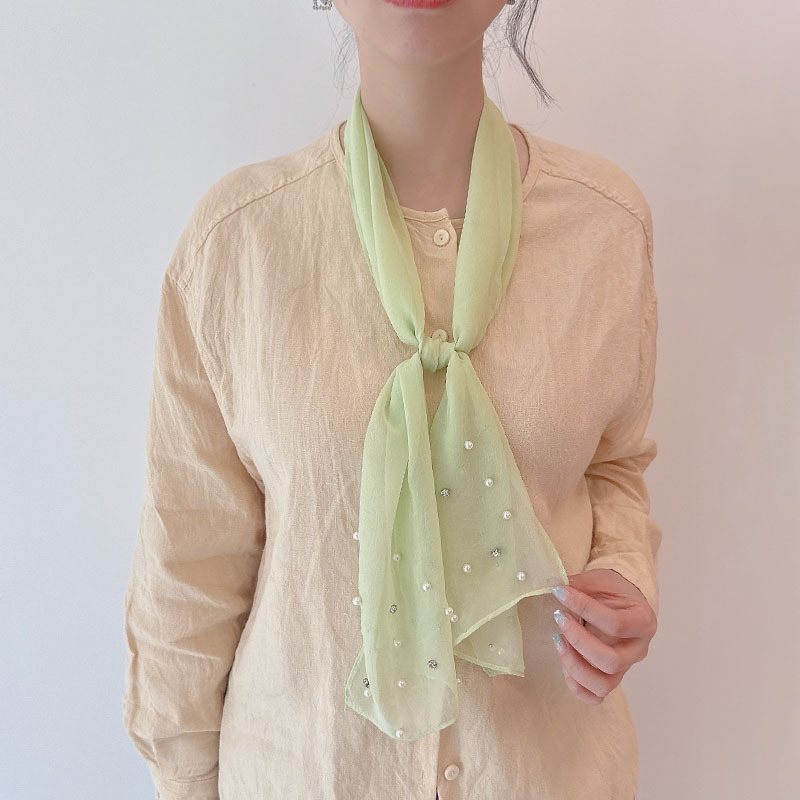 다이아몬드 진주 연예인 요정 스타일 실크 스카프 리본 여성용 플랫 혼 달콤한 신선한 실크 스카프 헤어 밴드 얇은 여름스토어 가기