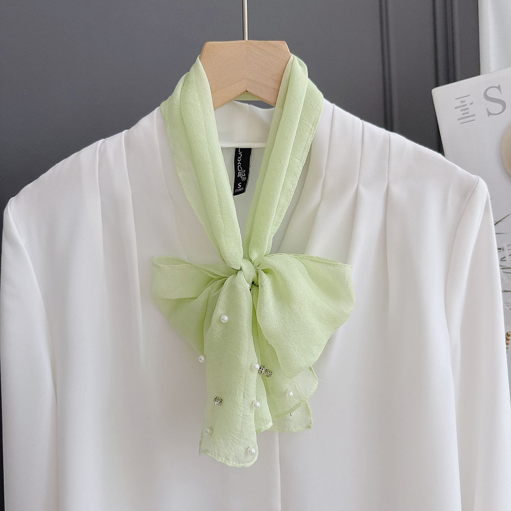 다이아몬드 진주 연예인 요정 스타일 실크 스카프 리본 여성용 플랫 혼 달콤한 신선한 실크 스카프 헤어 밴드 얇은 여름
