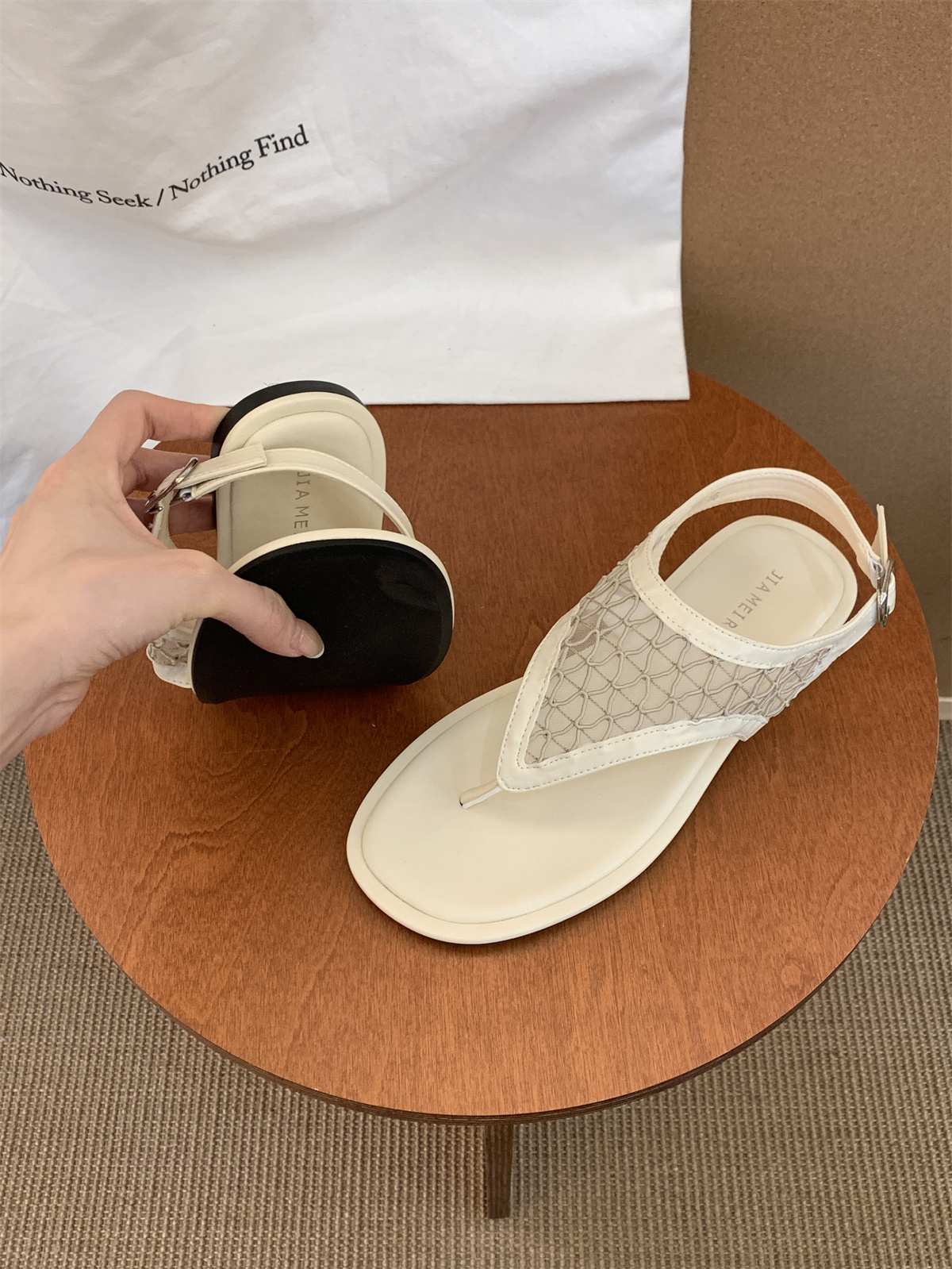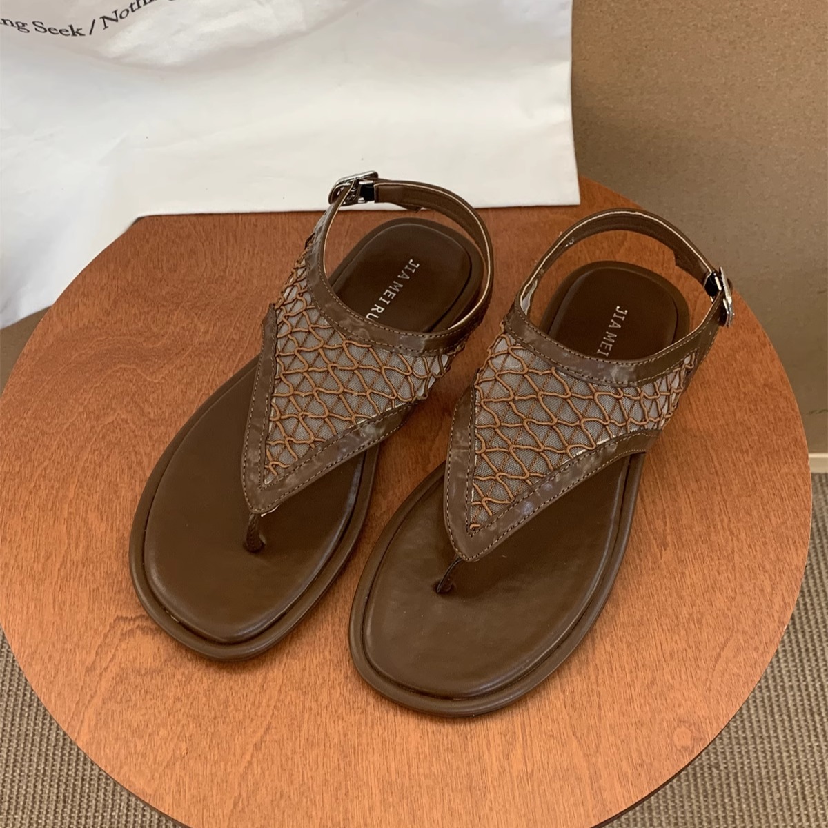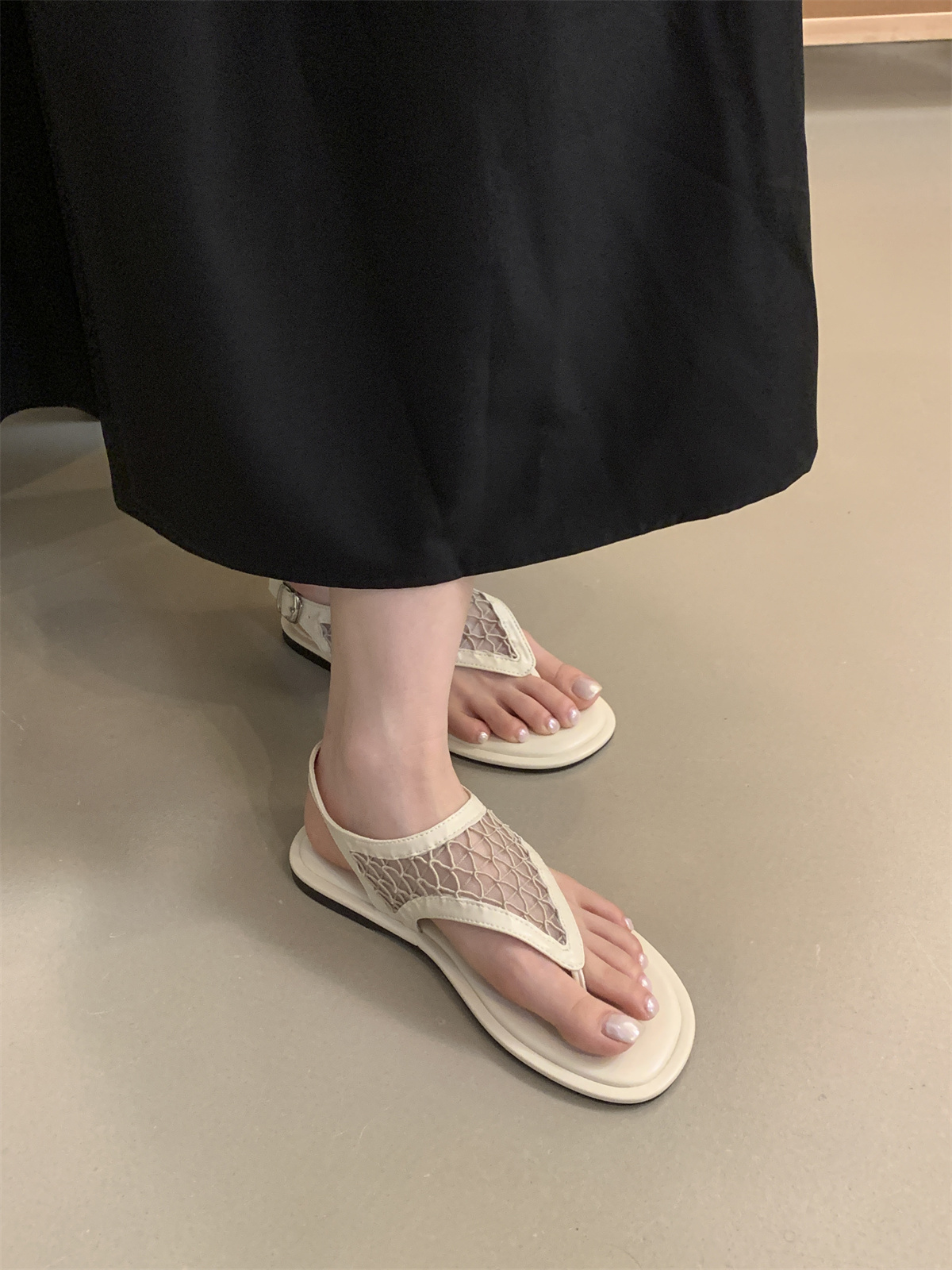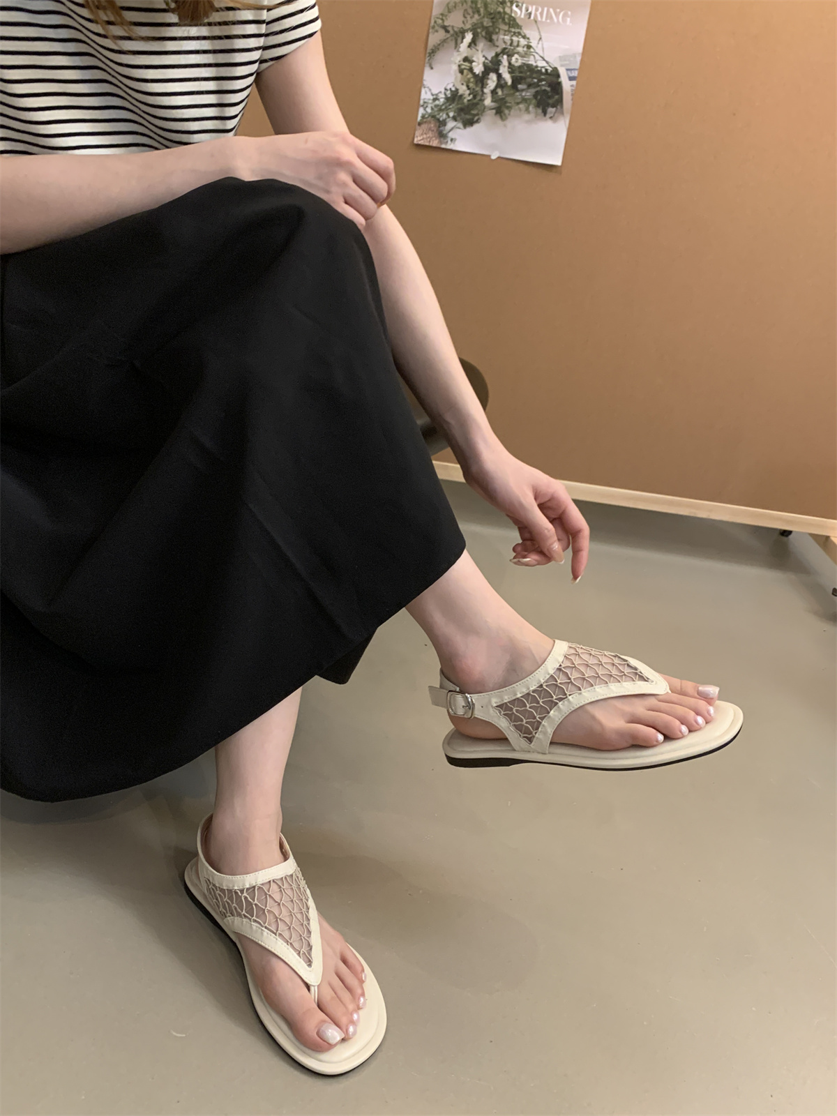 니치 디자인 여성용 니트 통 플립 플롭 2025 새로운 여름 휴가 비치 신발 플랫 샌들스토어 가기