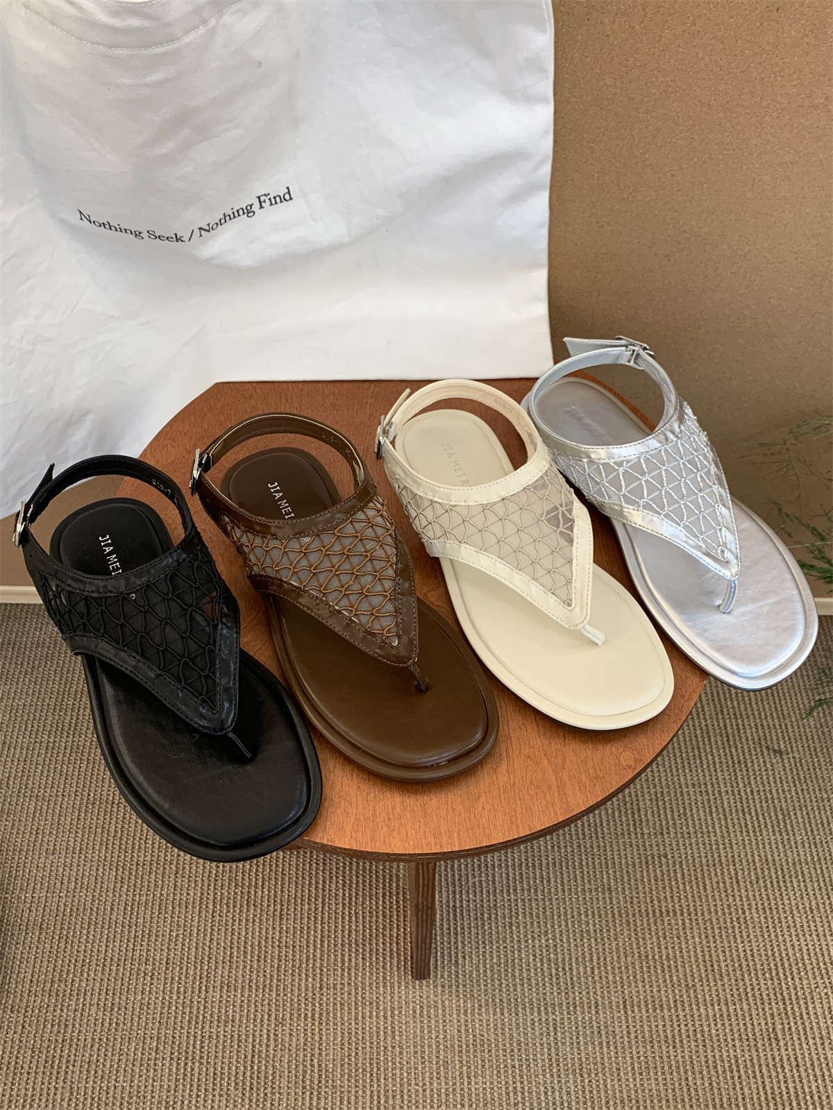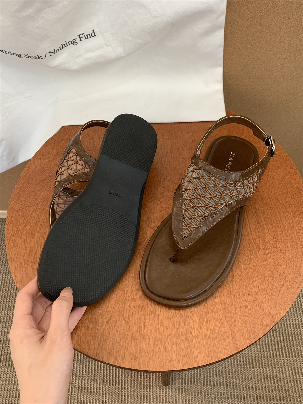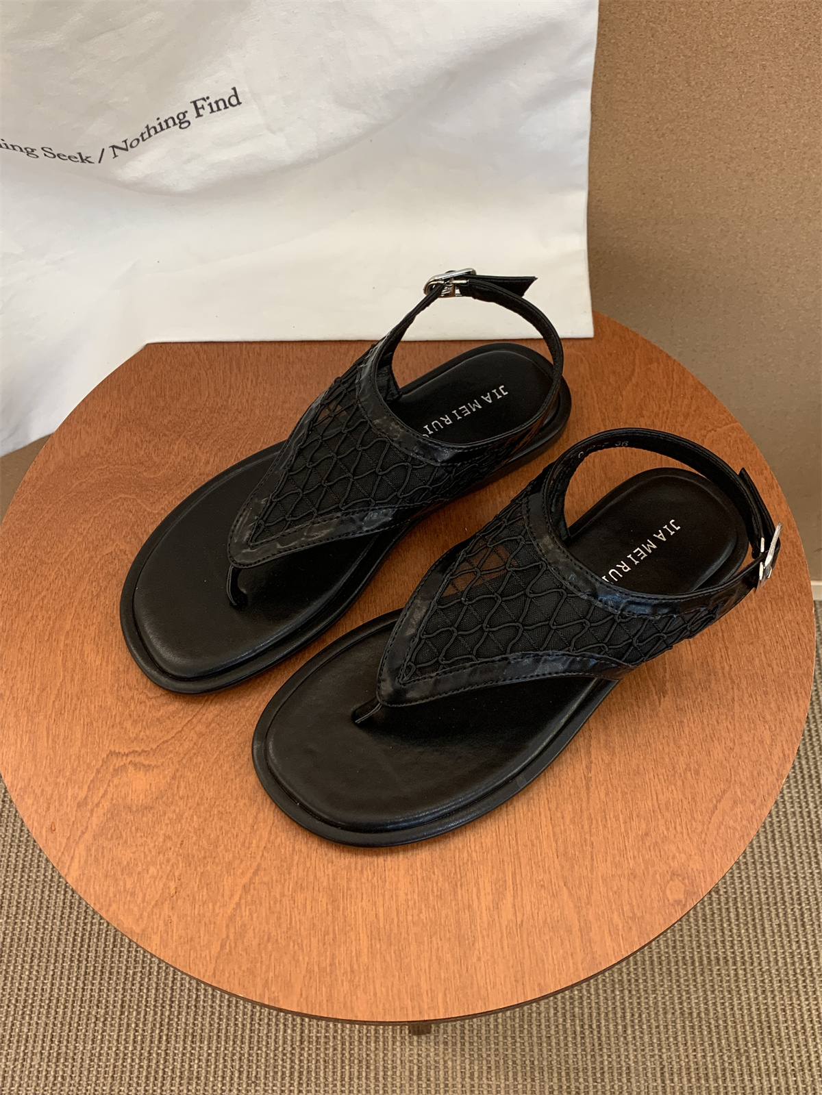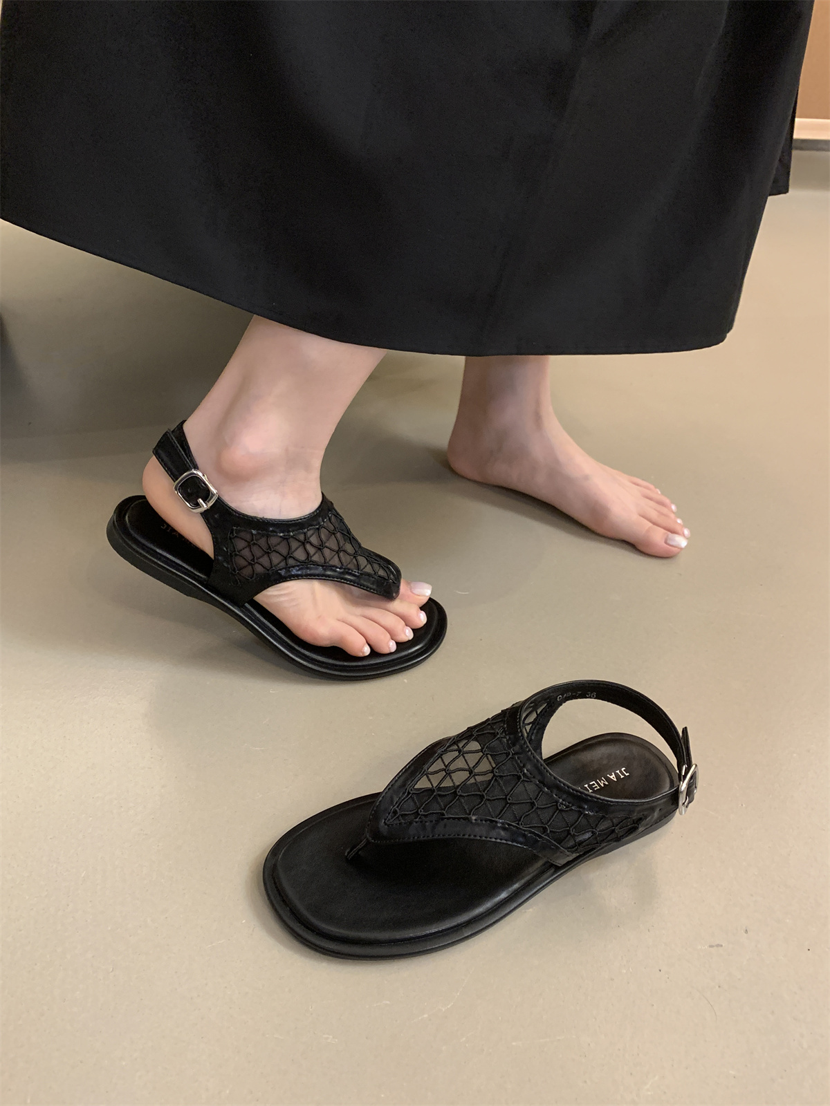 니치 디자인 여성용 니트 통 플립 플롭 2025 새로운 여름 휴가 비치 신발 플랫 샌들스토어 가기
