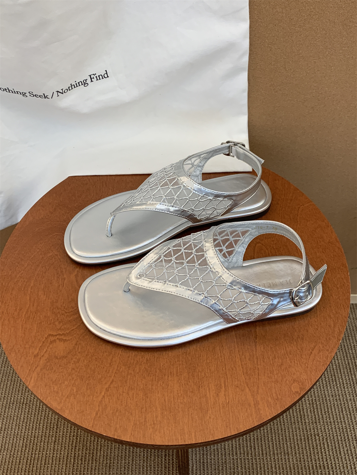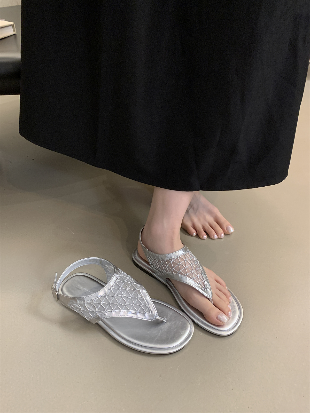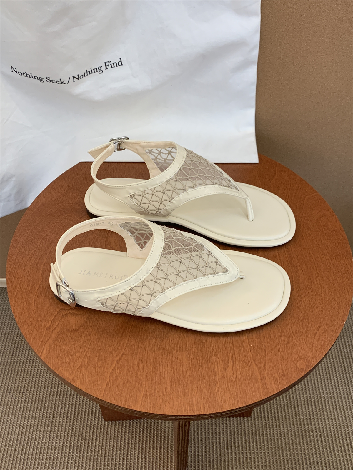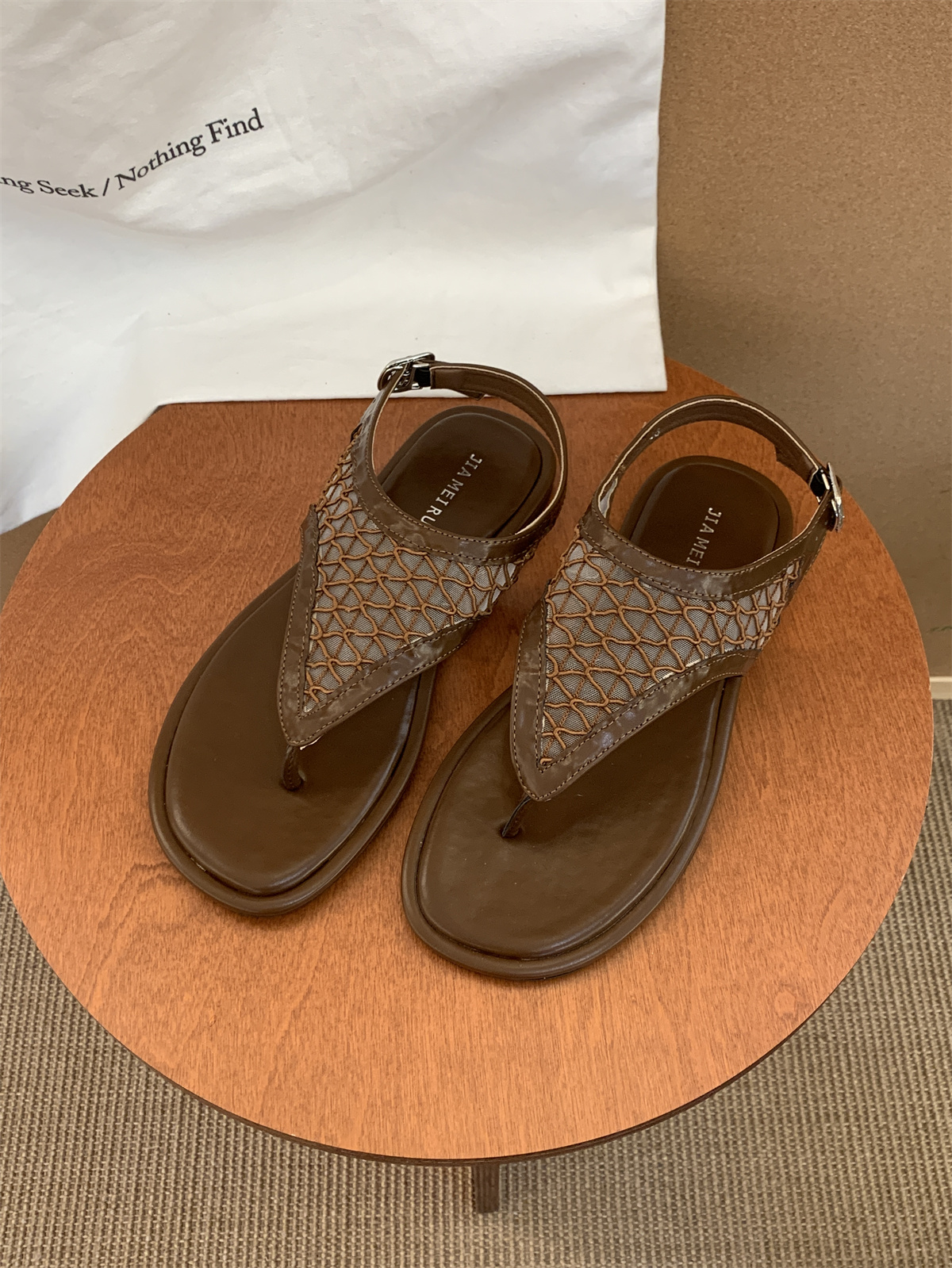 니치 디자인 여성용 니트 통 플립 플롭 2025 새로운 여름 휴가 비치 신발 플랫 샌들스토어 가기