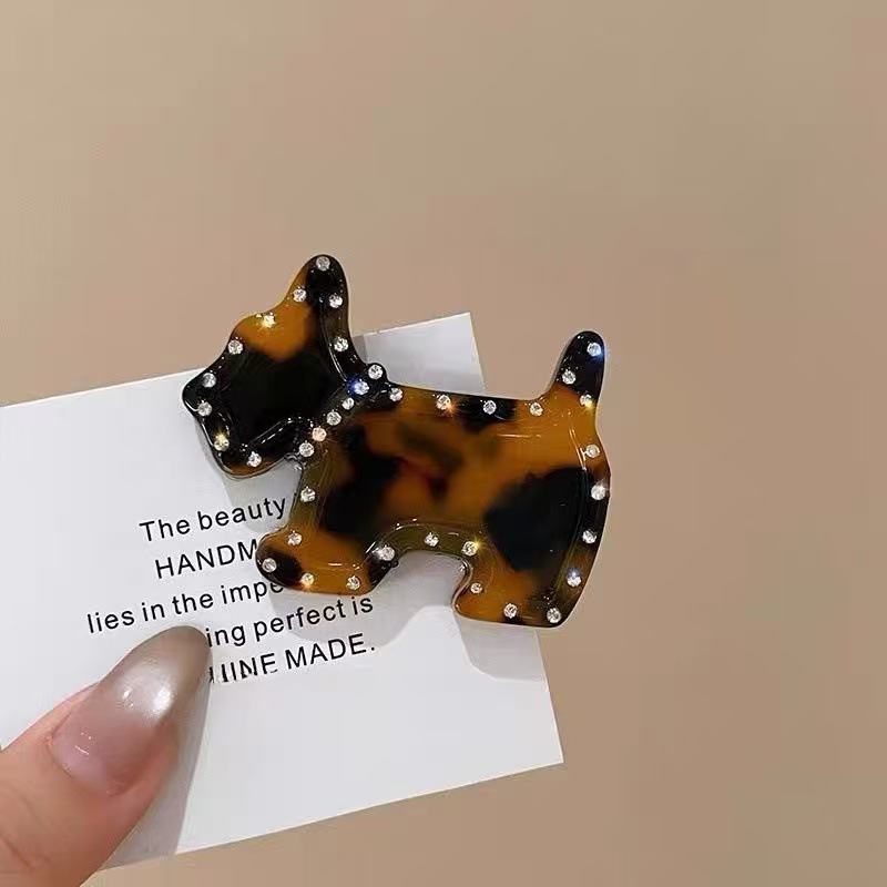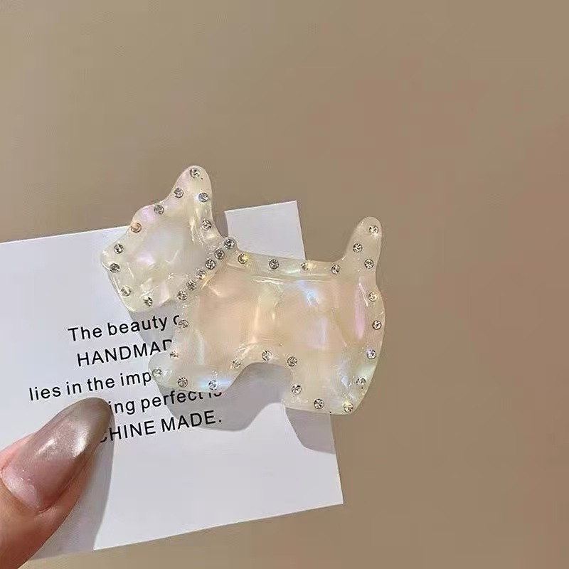 고급 Acetic Acid Rhinestone 강아지 헤어핀 여성의 귀여운 사이드 뱅 클립 덕빌 클립 사이드 클립 헤어 액세서리 2025 새로운 스타일스토어 가기