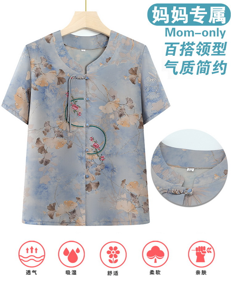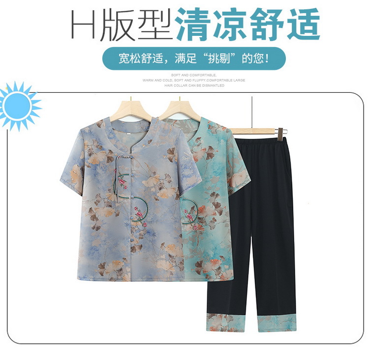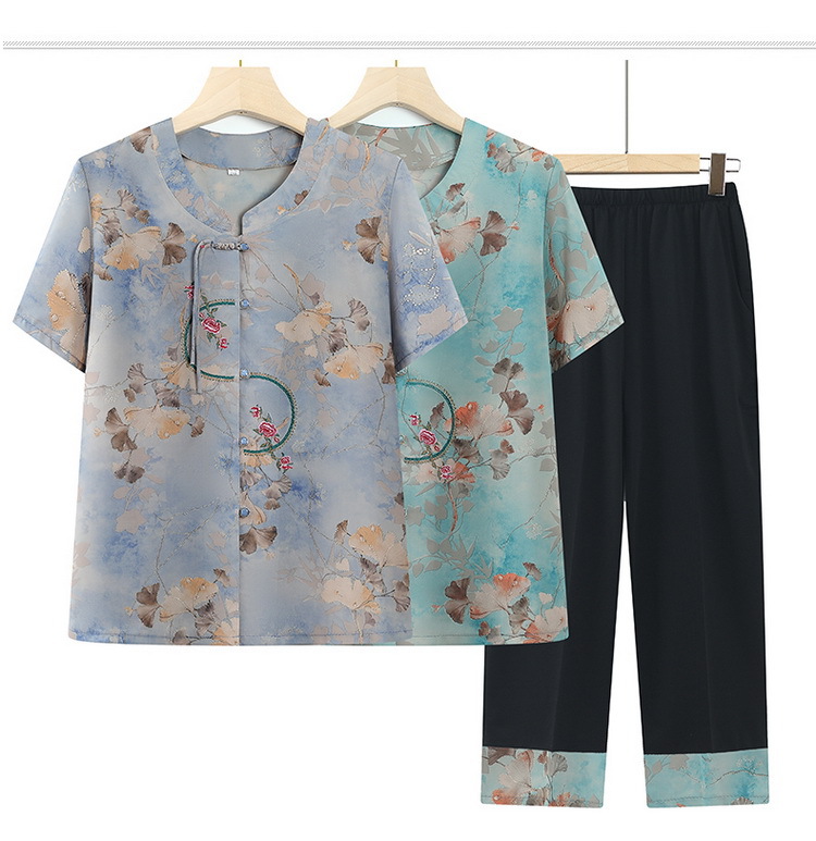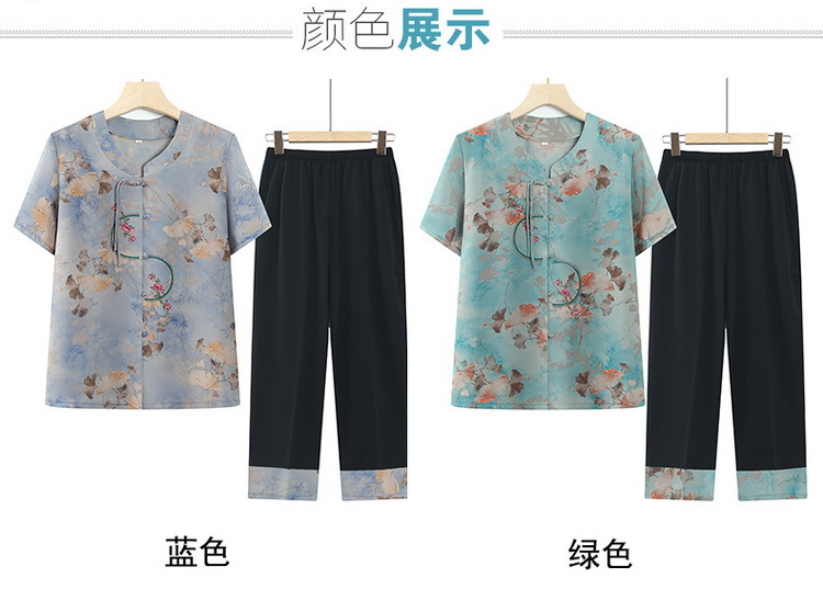 반팔 카디건 여름 세트 느슨한 중년 및 노인 인쇄 할머니 어머니 서양식 캐주얼 국가 스타일 플러스 사이즈 투피스 세트스토어 가기