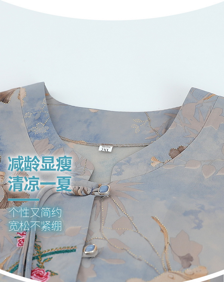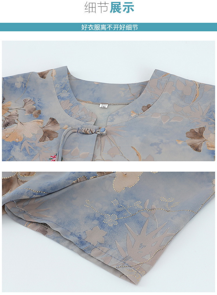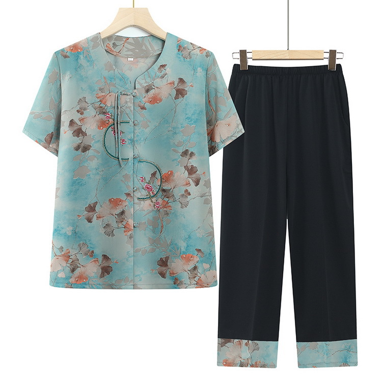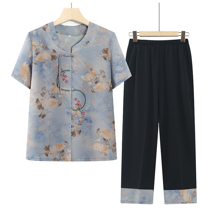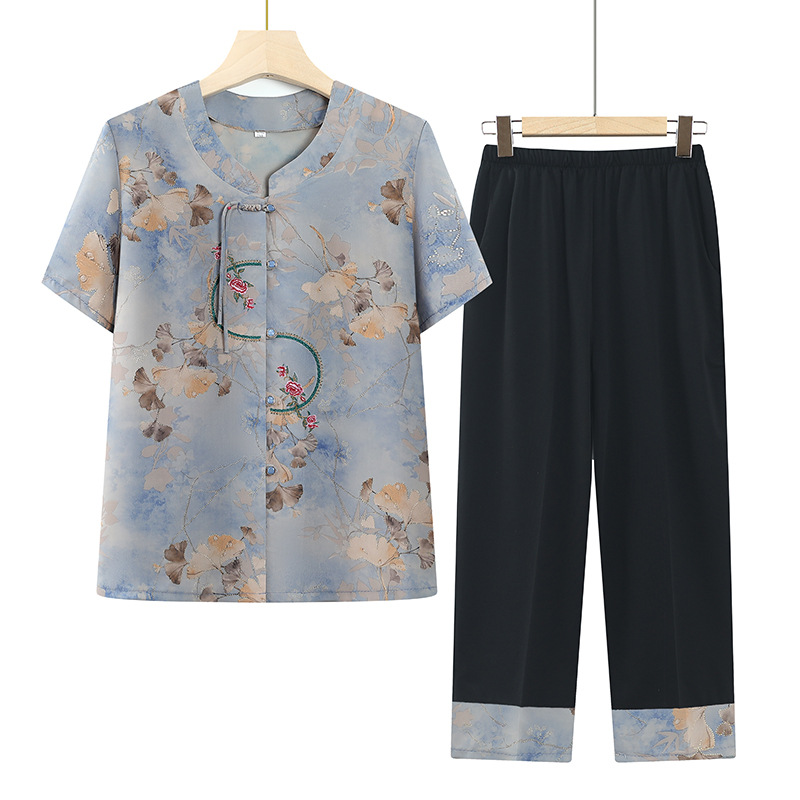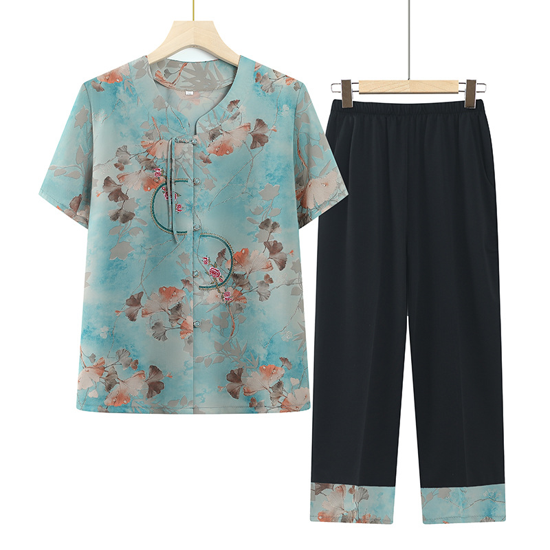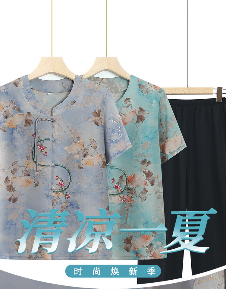 반팔 카디건 여름 세트 느슨한 중년 및 노인 인쇄 할머니 어머니 서양식 캐주얼 국가 스타일 플러스 사이즈 투피스 세트