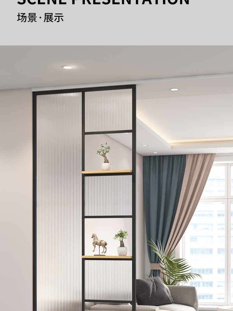 경량 고급 철제 장홍 유리 스크린 파티션, 거실, 현관, 화장실 차단 장식, 프라이버시 보호, 소형 주택용스토어 가기