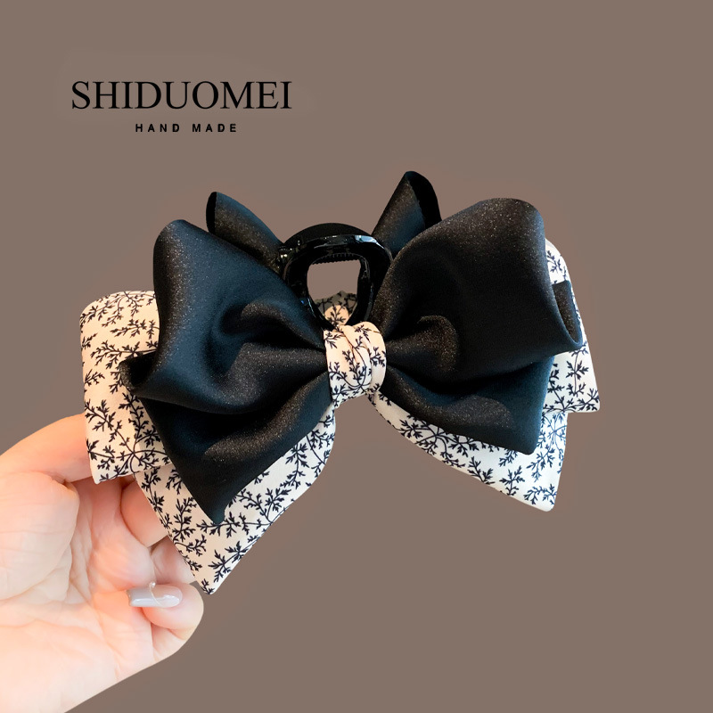 고급 새틴 꽃무늬 리본 클립, 새로운 스타일, 신선하고 다재다능한 여성용 머리 뒤쪽 샤크 클립 헤어 액세서리 도매스토어 가기