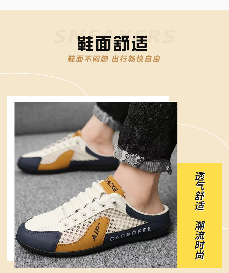 남성용 바오터우 하프 슬리퍼, 여름 메쉬 통기성 남성 운동화, 남성용 슬립온 남성 스포츠 및 캐주얼 신발, 하프 슬리퍼스토어 가기