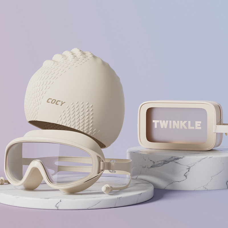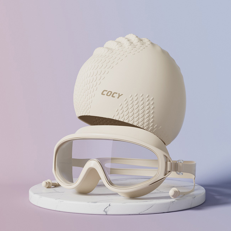 NICE 수영 모자 여성의 긴 머리 성인 방수 귀 보호자 높은 색상 값 실리콘 플러스 헤드 버블 수영 모자 세트