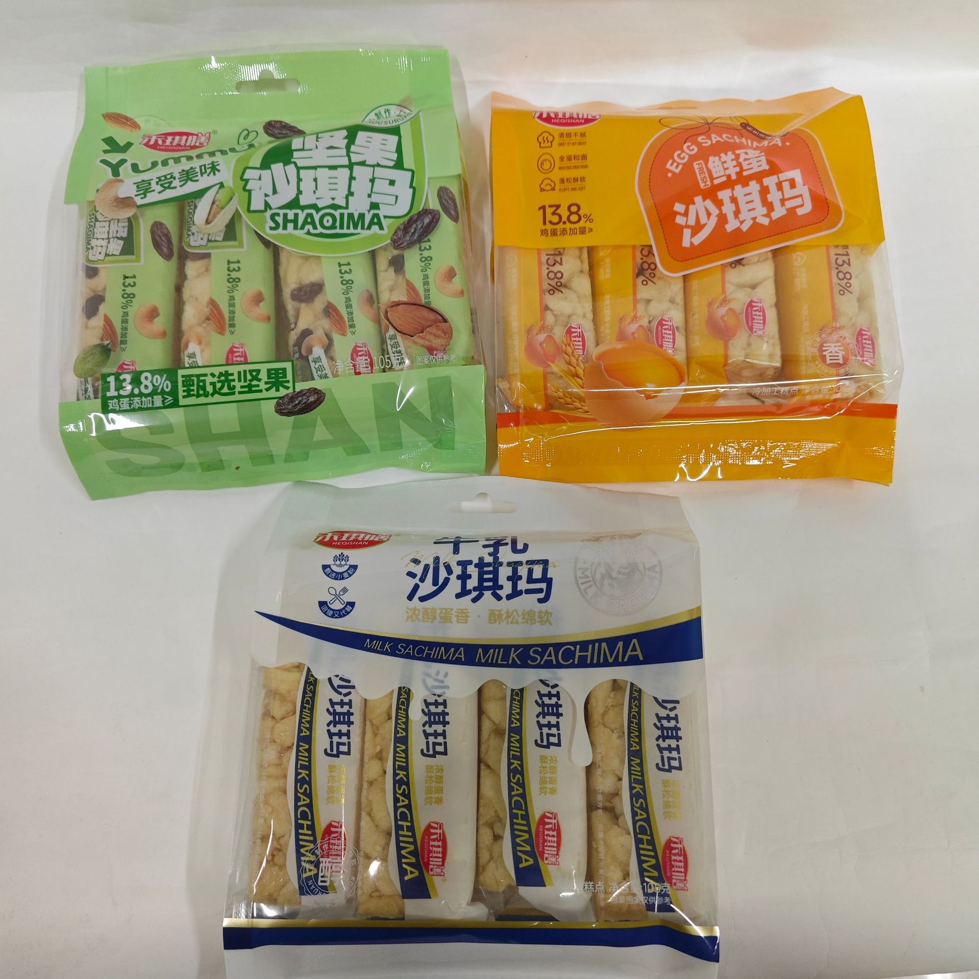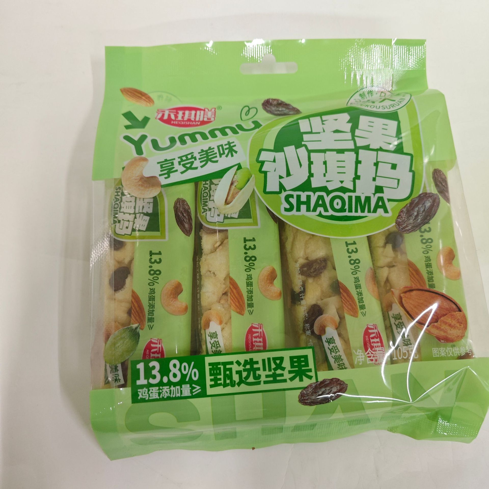 Heqishan Nut Shaqima 신선한 계란 우유 견과류 맛 푹신하고 부드러운 고점 빵 스낵 케이크 애프터눈 티