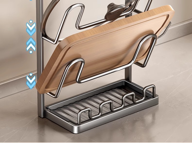 천국과 지구 물고기 주방 냄비 커버 랙 카운터 탑 주방 보관 랙 벽에 걸려있는 이중 목적 냄비 삽 랙 스토리지 앤빌 요리 보드 플레이서
