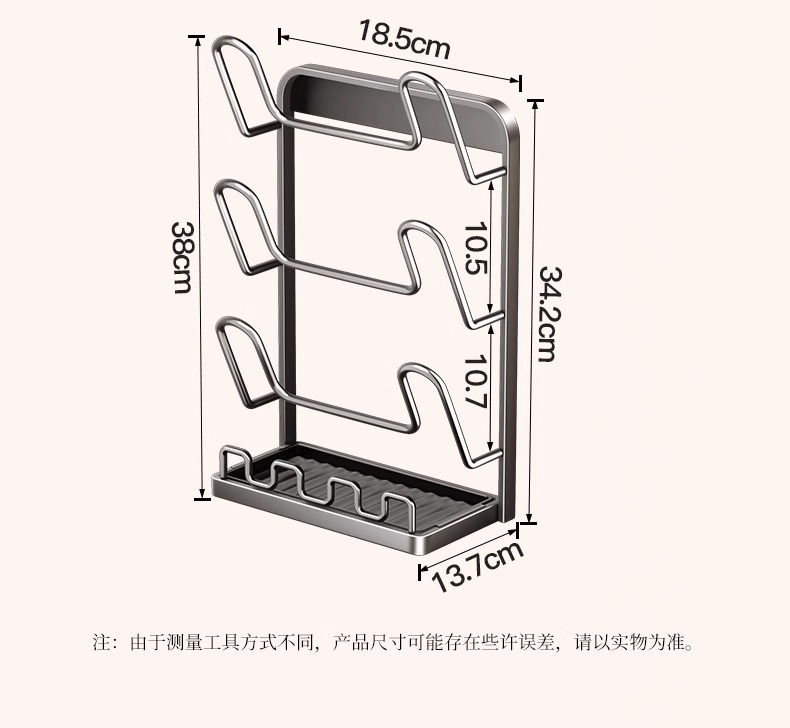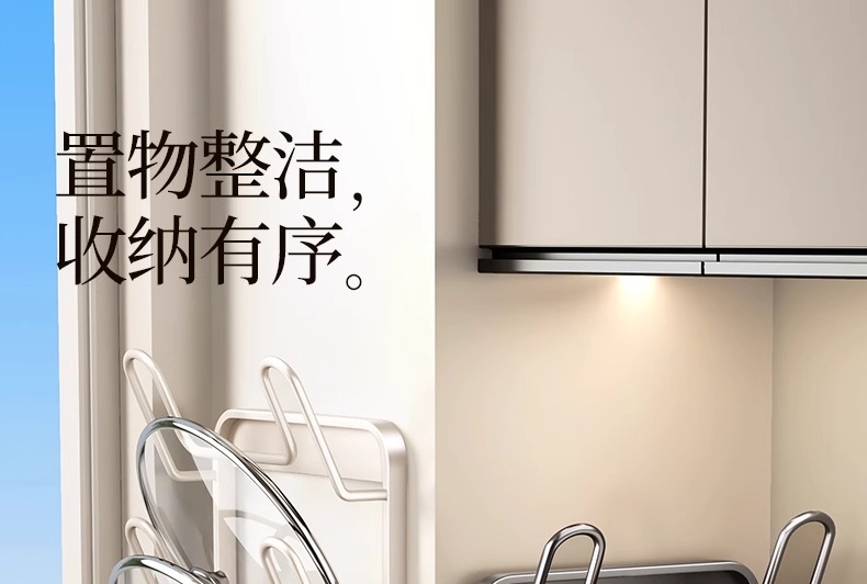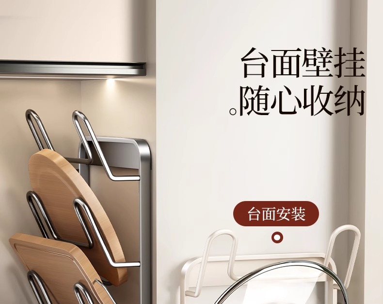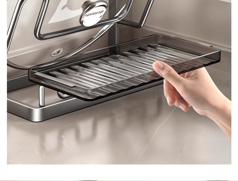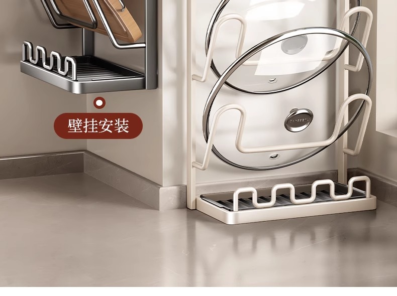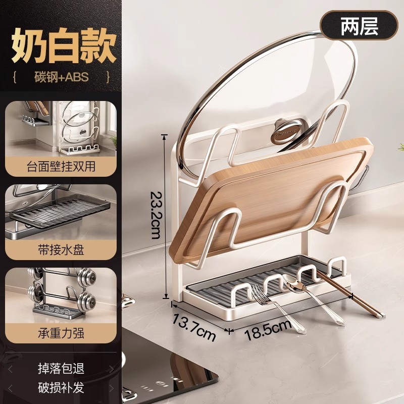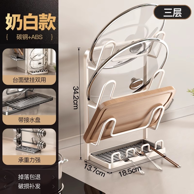 • 유백색 3단 냄비 뚜껑 선반 [물받이 포함] 조리대/벽걸이