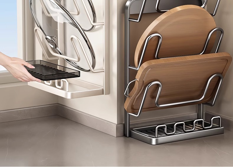• 유백색·이중 냄비 뚜껑 홀더[물받이 포함] 조리대/벽걸이