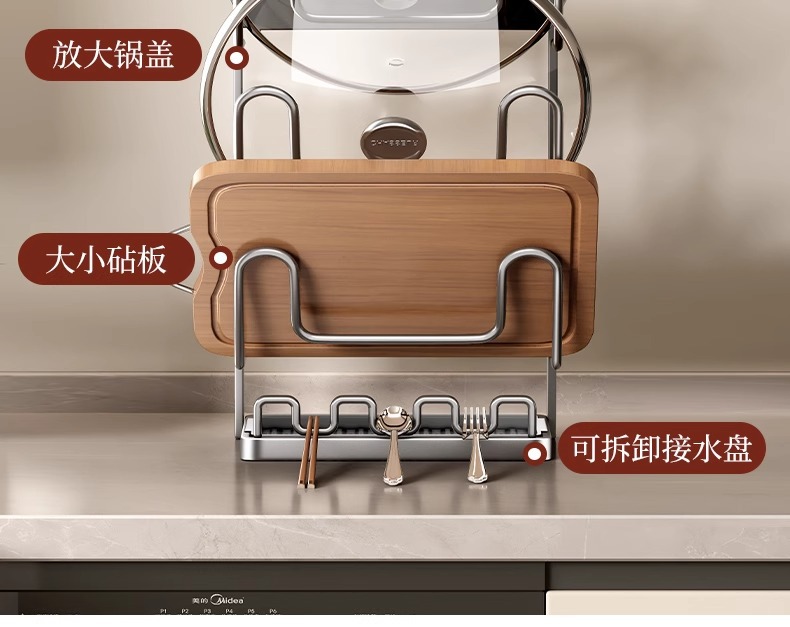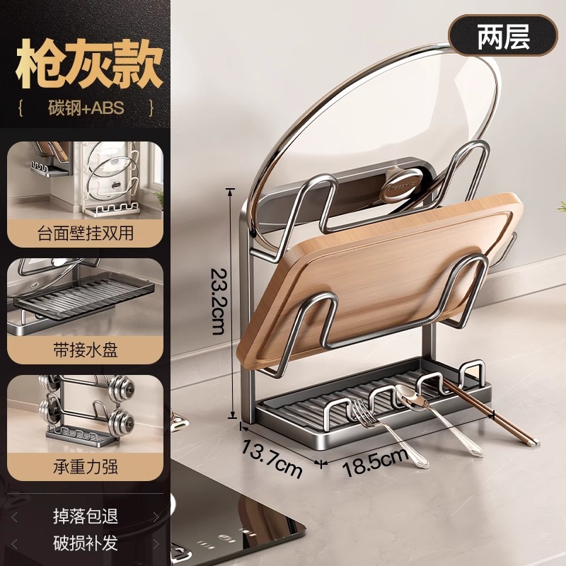 천국과 지구 물고기 주방 냄비 커버 랙 카운터 탑 주방 보관 랙 벽에 걸려있는 이중 목적 냄비 삽 랙 스토리지 앤빌 요리 보드 플레이서스토어 가기