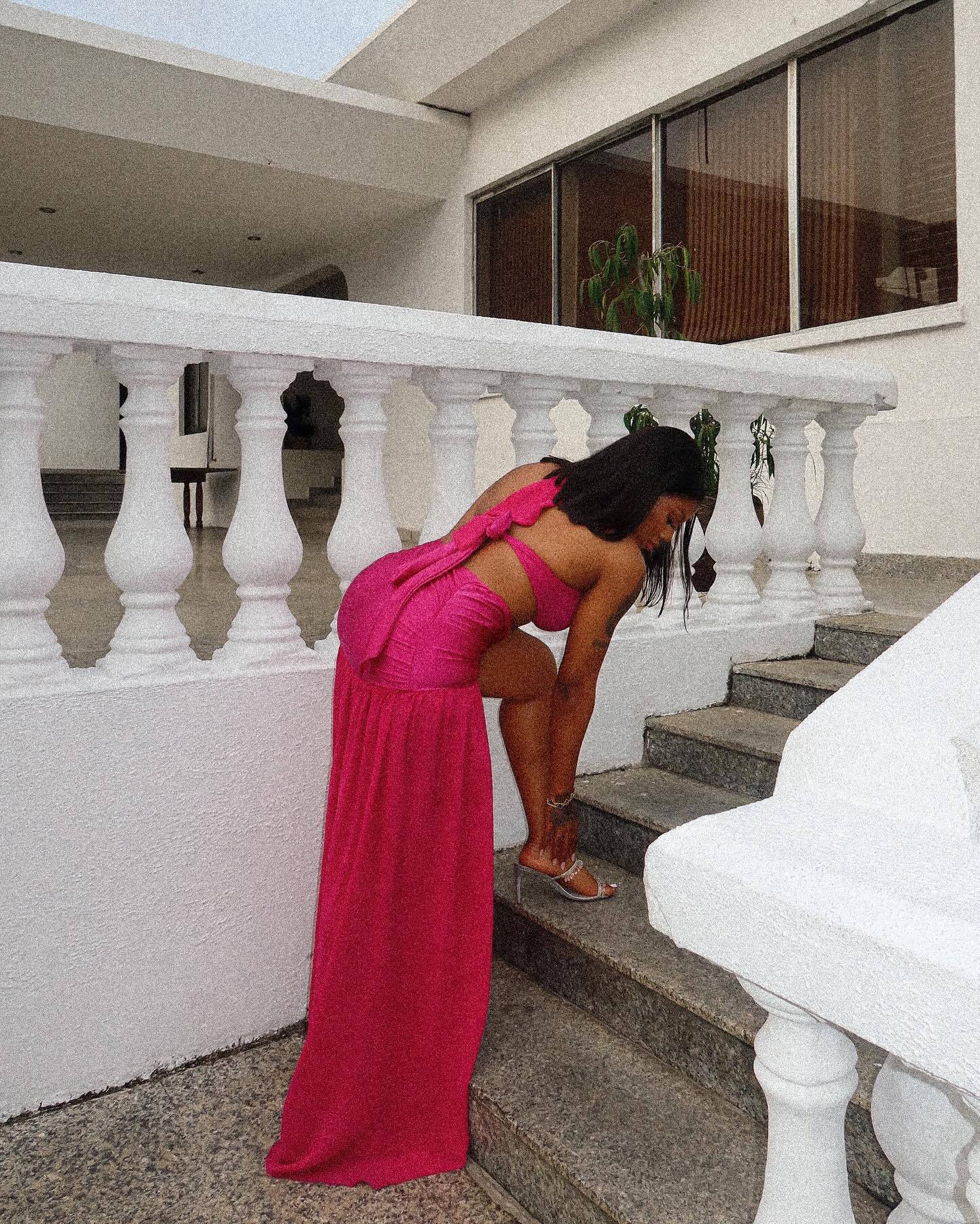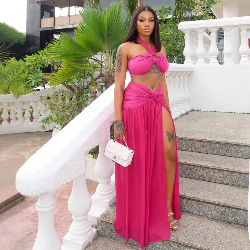 유럽과 미국식 여성의 뜨거운 섹시한 목 튜브 탑 오픈 허리 스플릿 스커트 아프리카 스타일의 여성용 투피스 세트스토어 가기