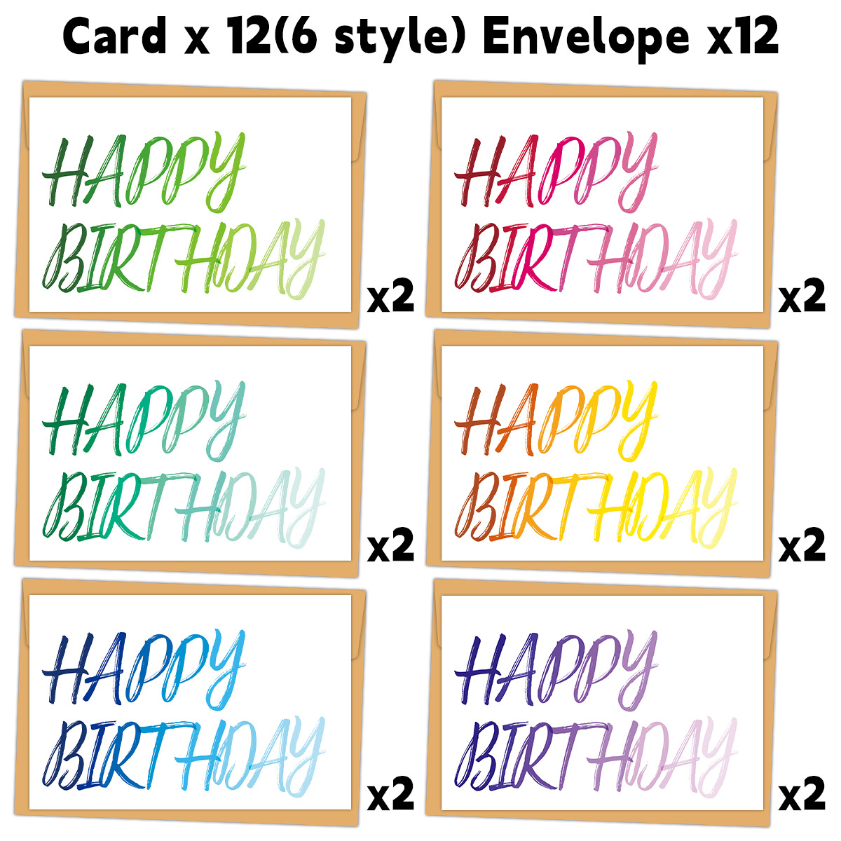 12 세트 수채화 낙서 아마존 생일 축하 카드 축복 휴일 생일 메시지 봉투가있는 빈 카드스토어 가기