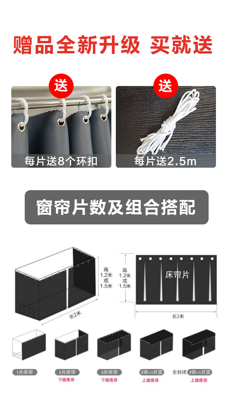 침대 커튼 차광 새로운 스타일 100% 전체 학생 기숙사 이층 침대 커튼 남성과 여성 기숙사 침대 주변 두꺼운 차단 천