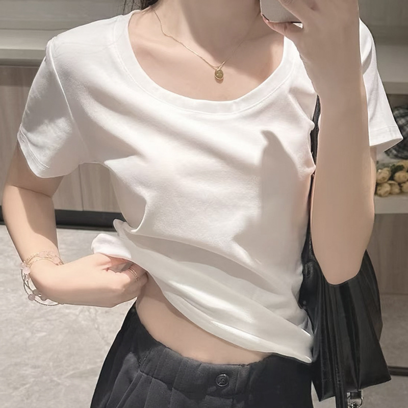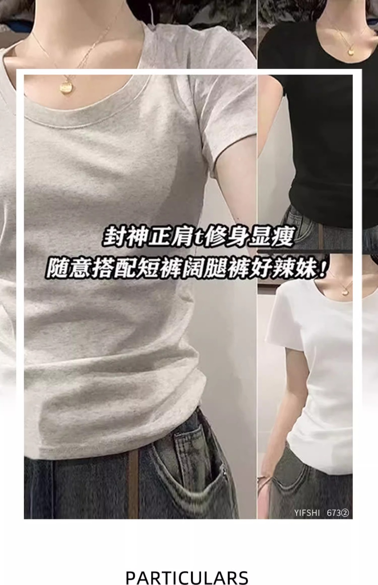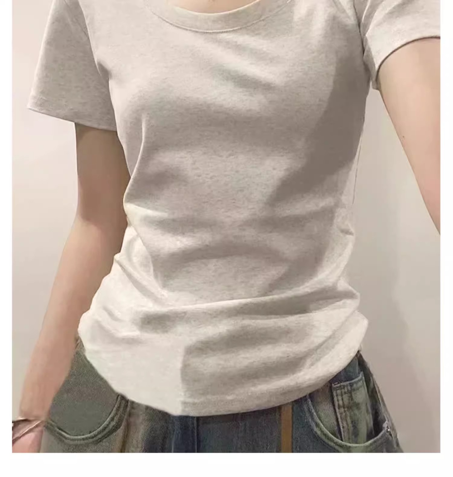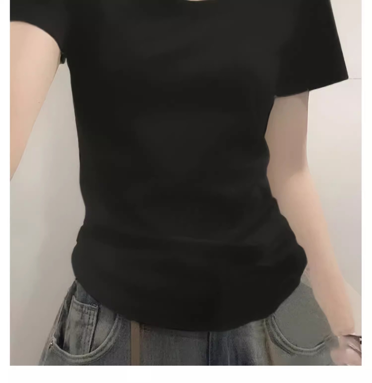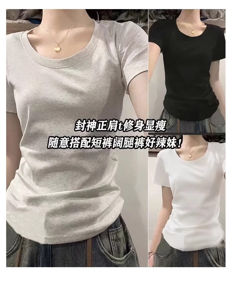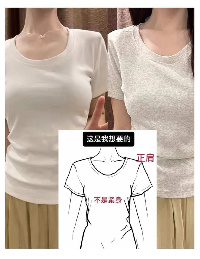 아메리칸 스타일 어깨 크루 넥 반팔 티셔츠 여성 여름 얇은 2025 새로운 스타일 스파이스 걸스 슬림 핏 슬리밍베이스 재킷스토어 가기