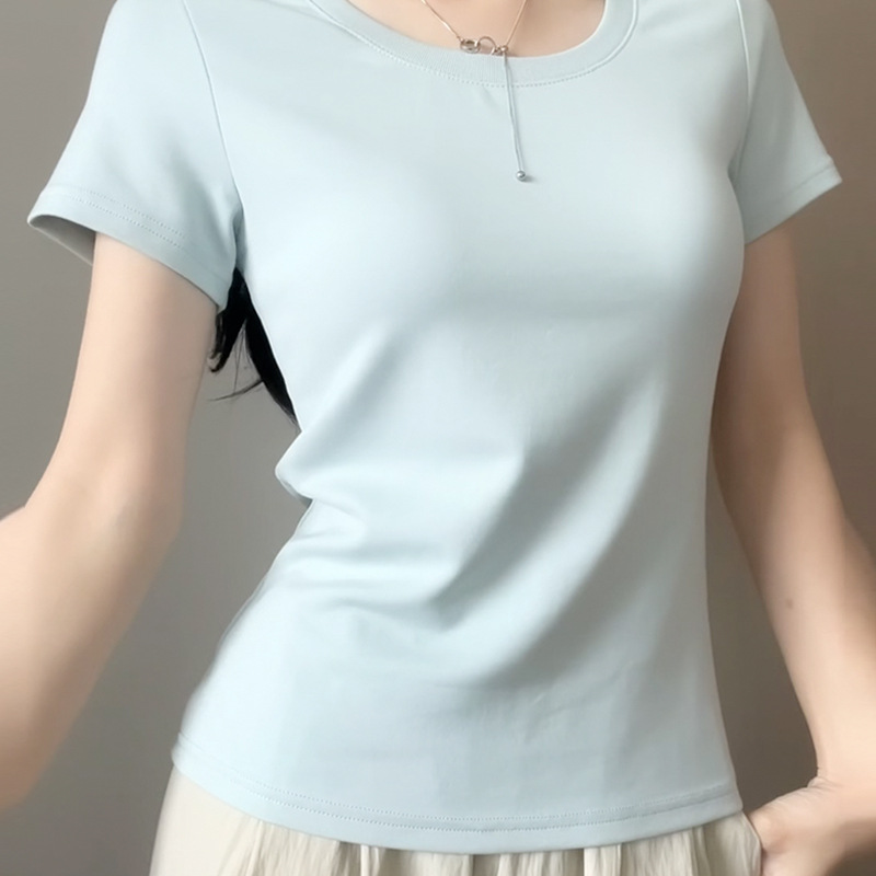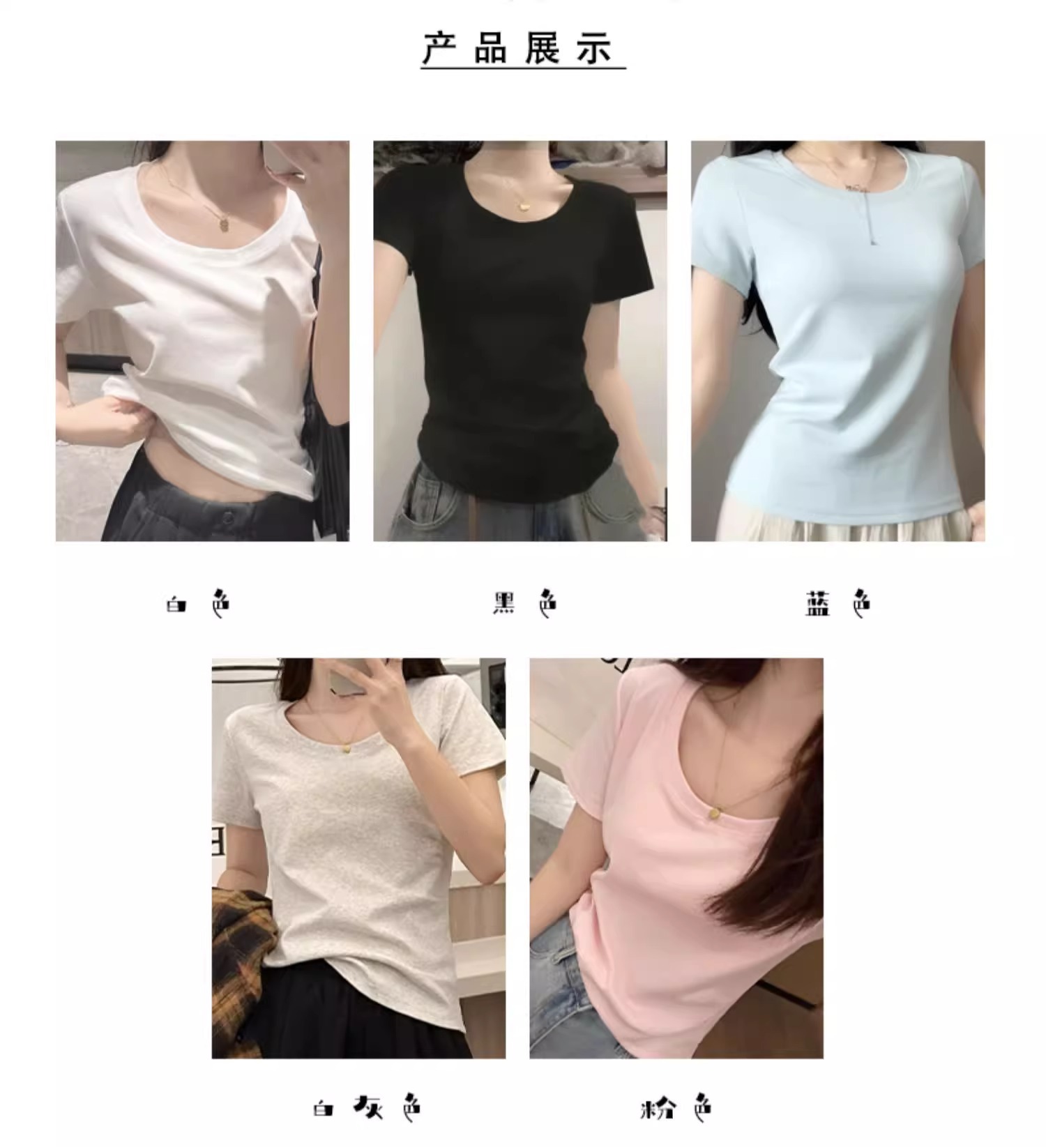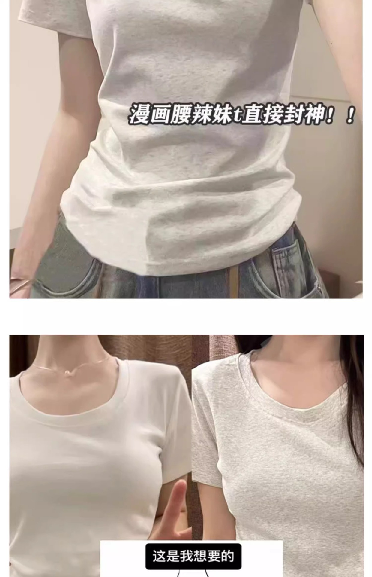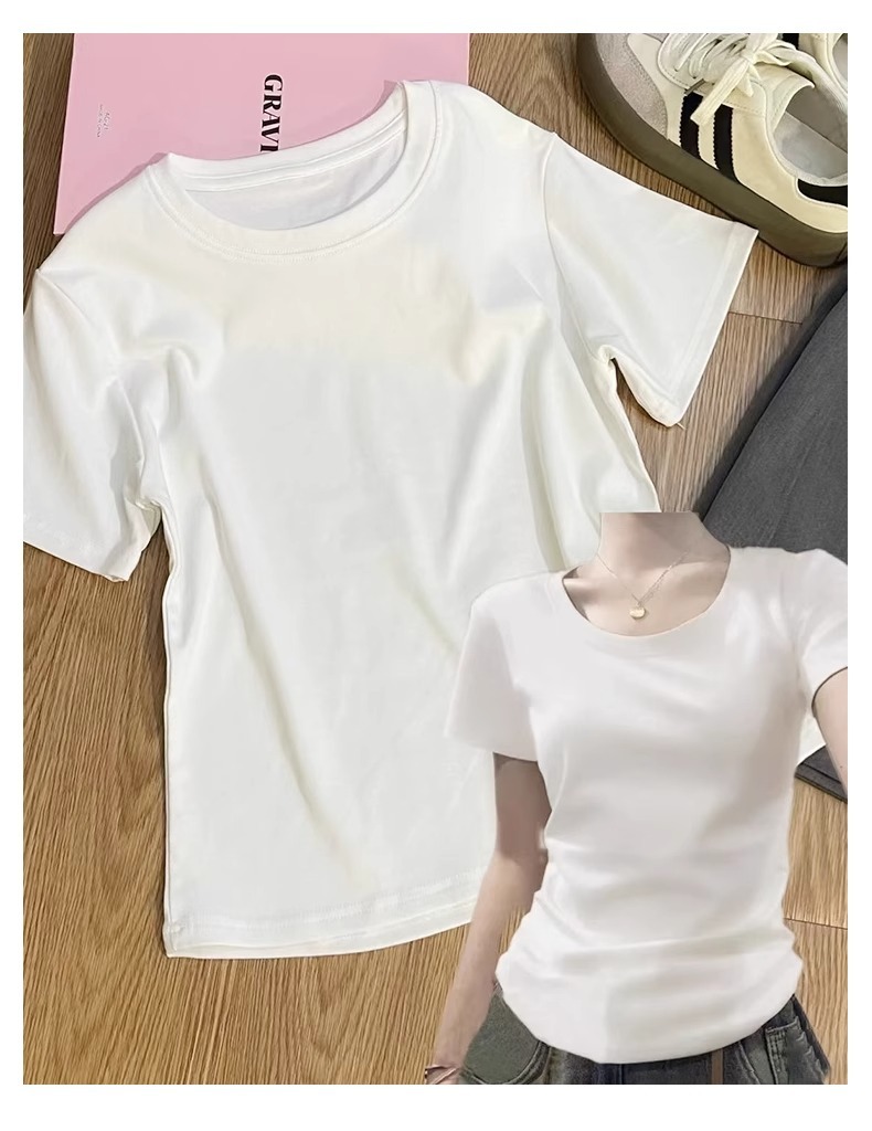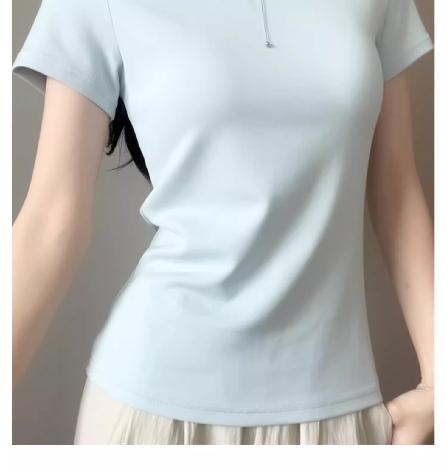아메리칸 스타일 어깨 크루 넥 반팔 티셔츠 여성 여름 얇은 2025 새로운 스타일 스파이스 걸스 슬림 핏 슬리밍베이스 재킷스토어 가기