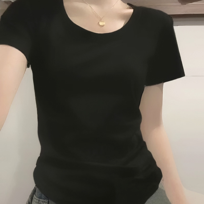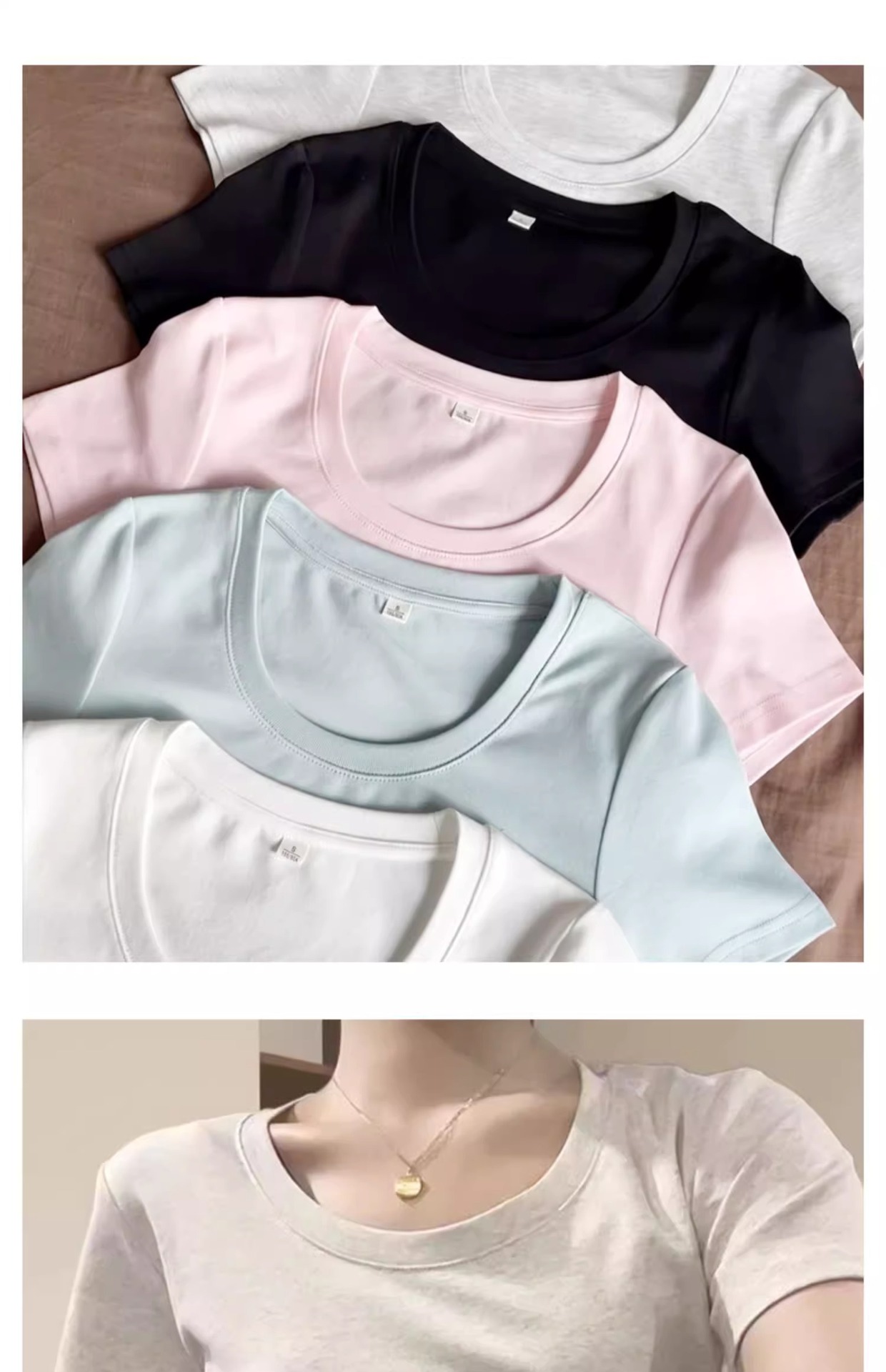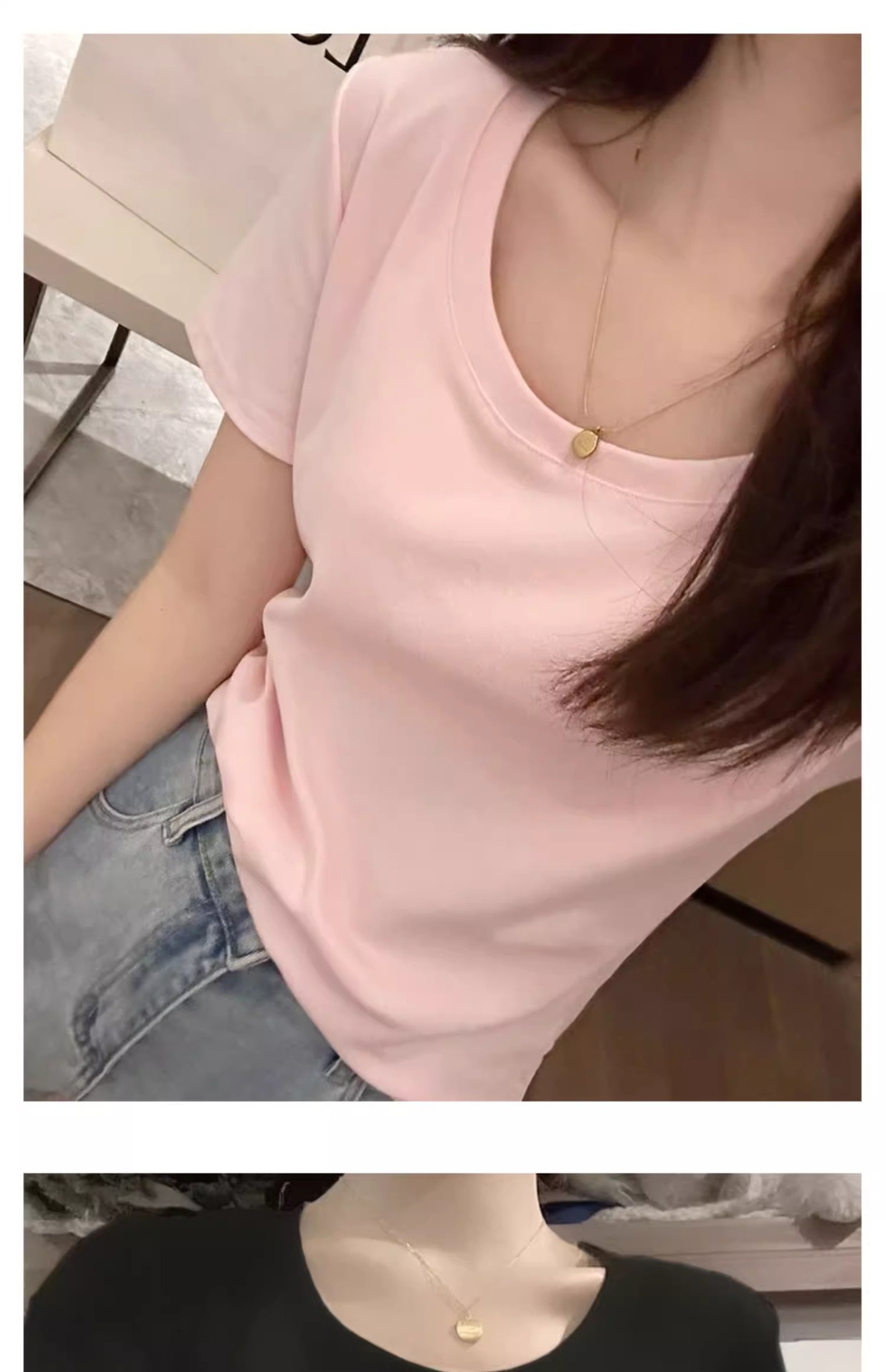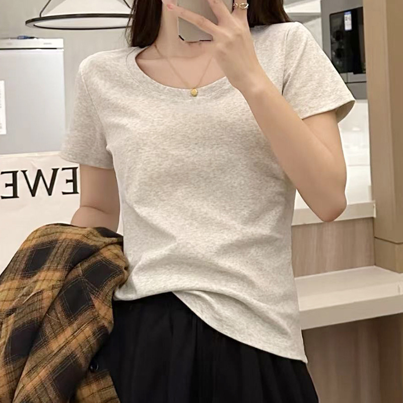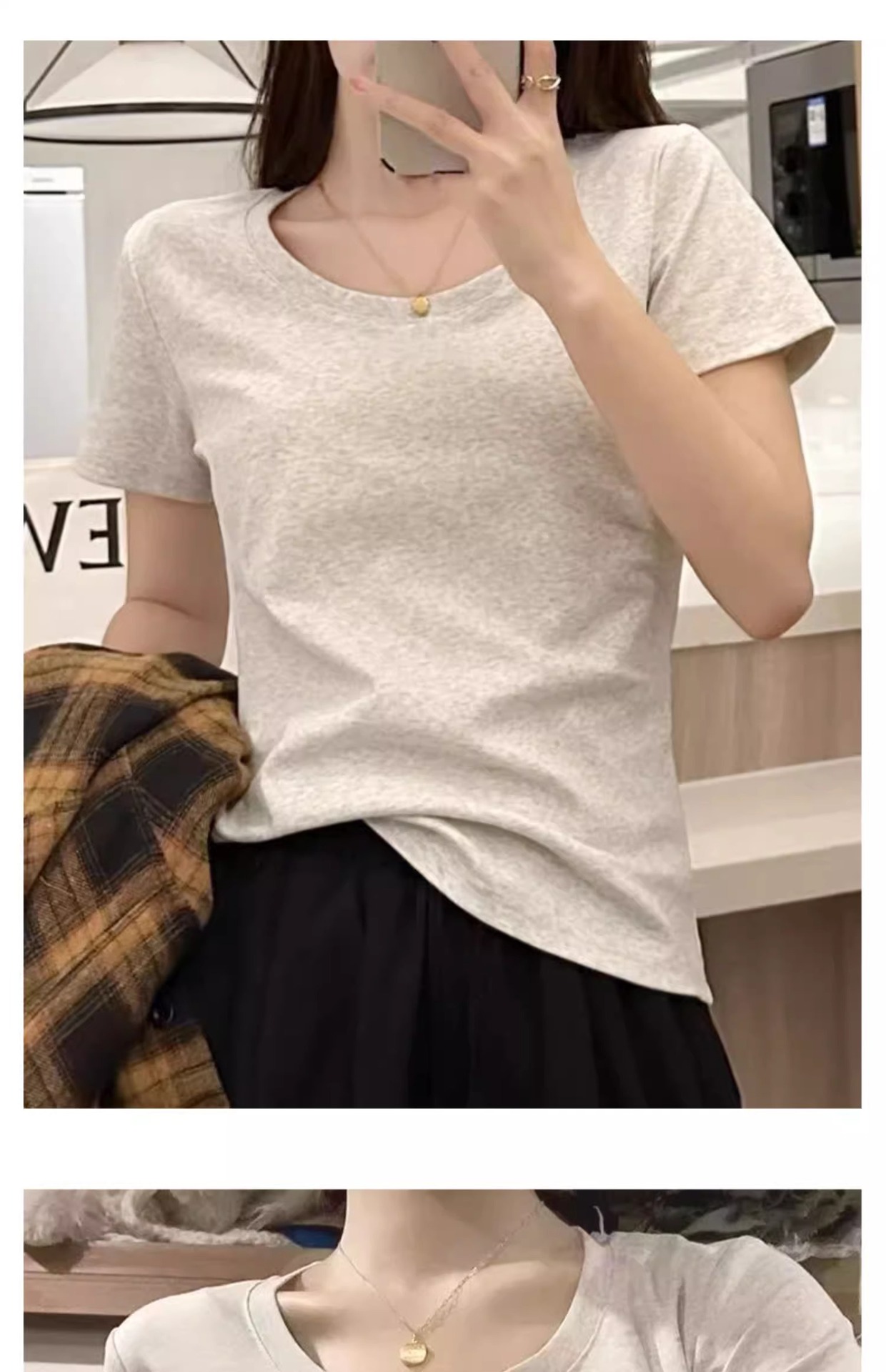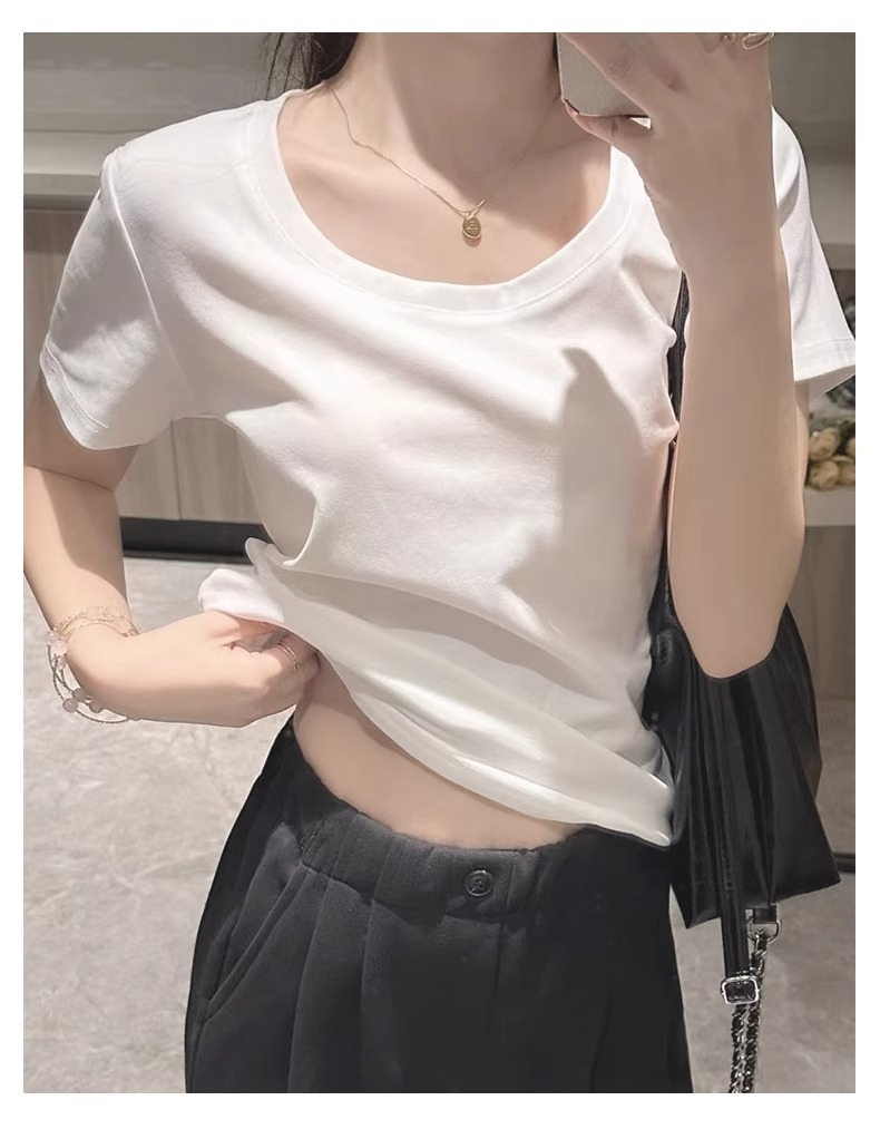 아메리칸 스타일 어깨 크루 넥 반팔 티셔츠 여성 여름 얇은 2025 새로운 스타일 스파이스 걸스 슬림 핏 슬리밍베이스 재킷스토어 가기