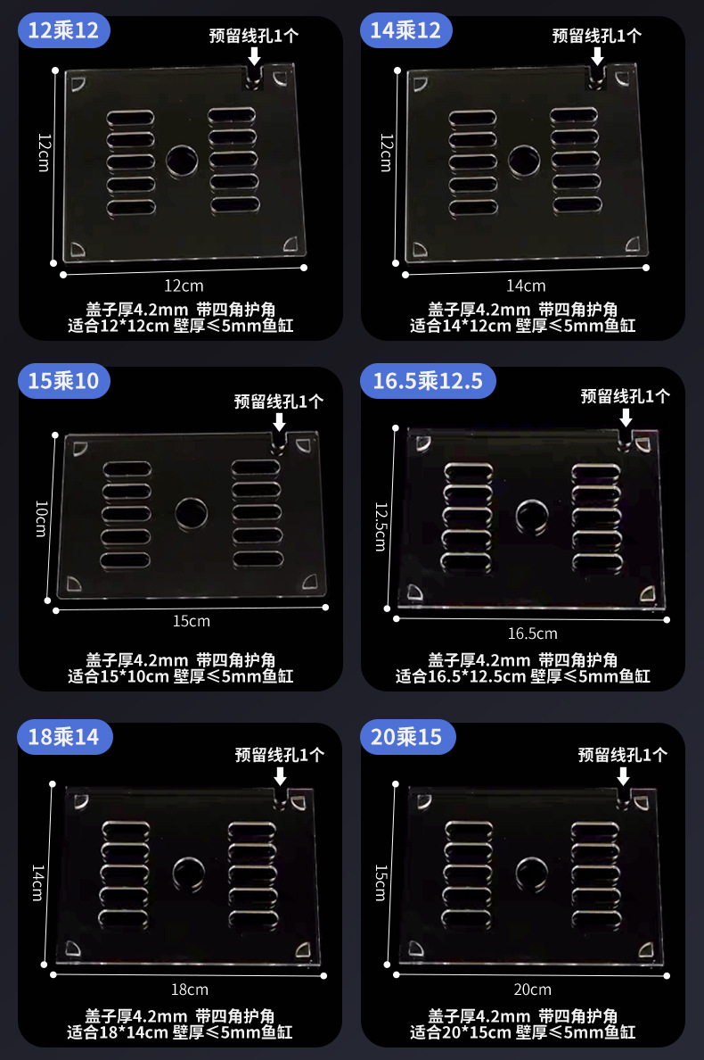 • Yee 아크릴 수조에 적합한 16.5*12.5cm 실린더 커버