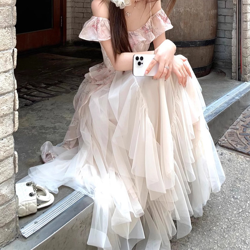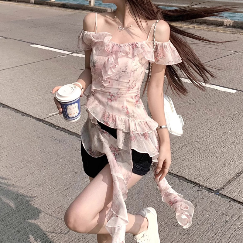 플린팅 agilawum/오프 숄더 플로럴 홀터 탑 불규칙한 거즈 스커트 세트 여름 아름다운 스커트 어린이 패션스토어 가기