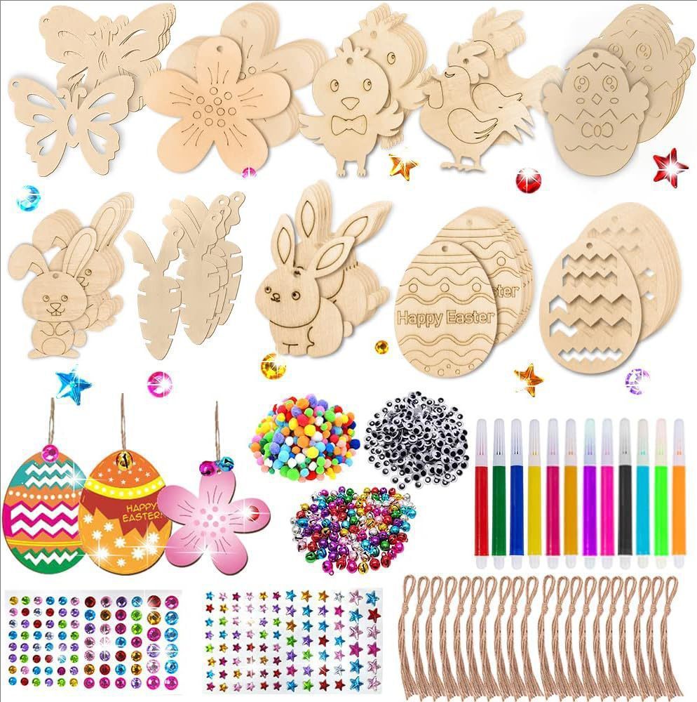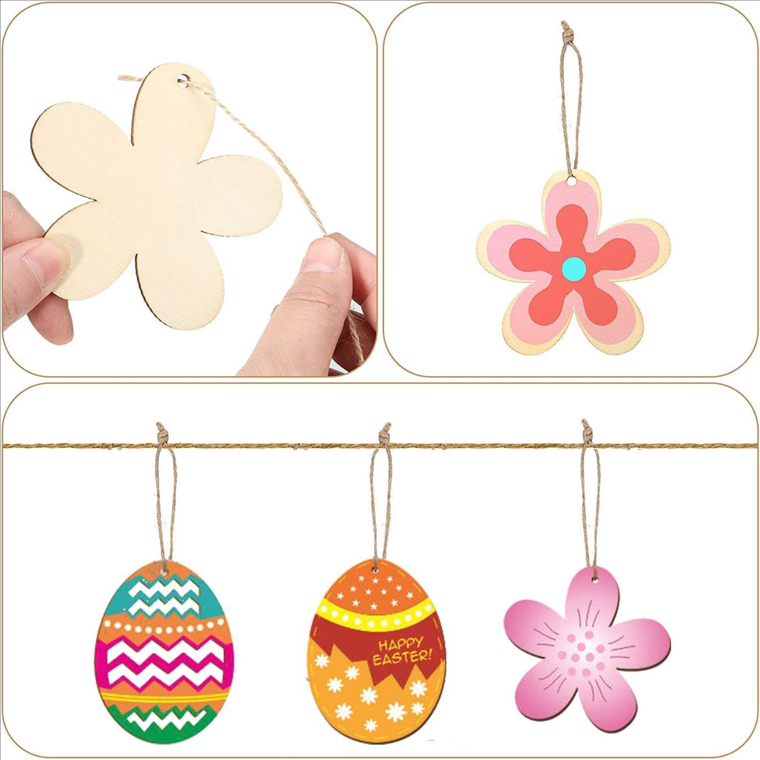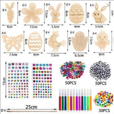 크로스 국경 나무 부활절 공예 그림 펜던트 어린이 나무 부활절 펜던트 레이저 컷 우드 칩