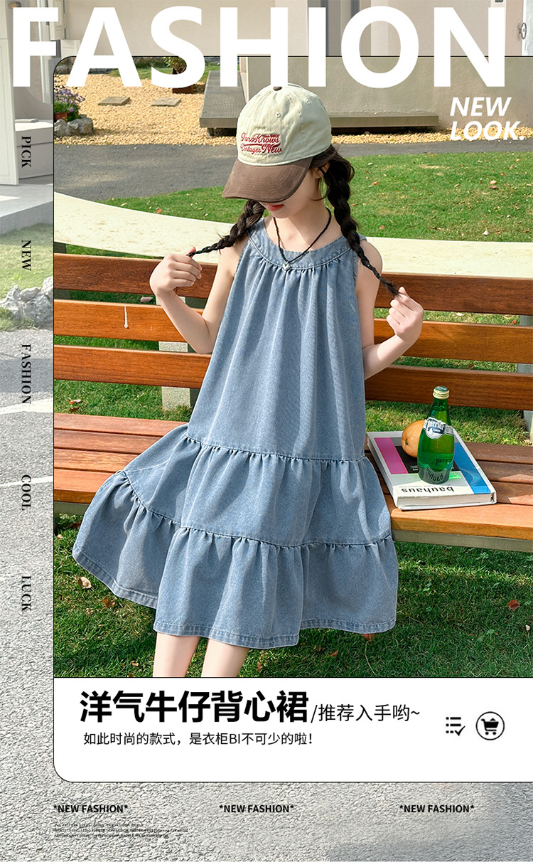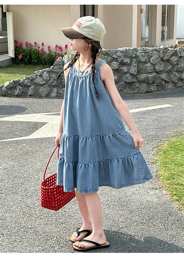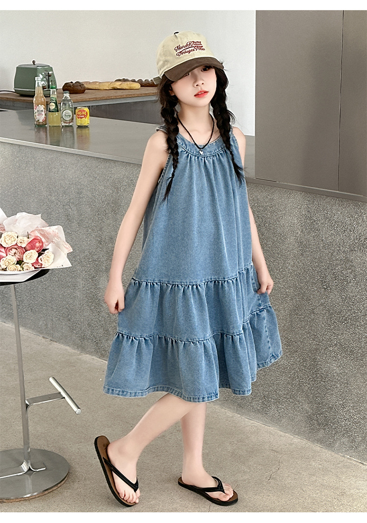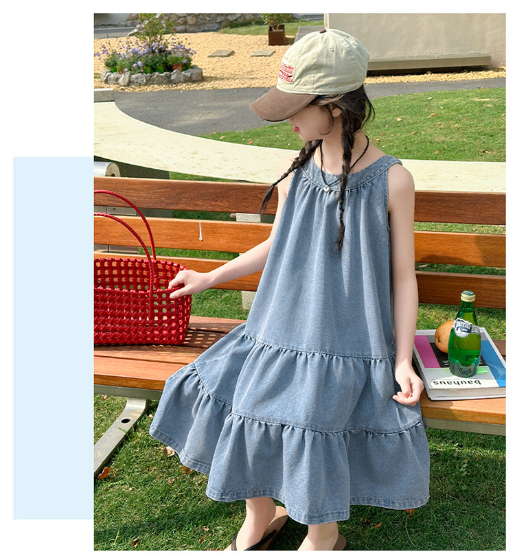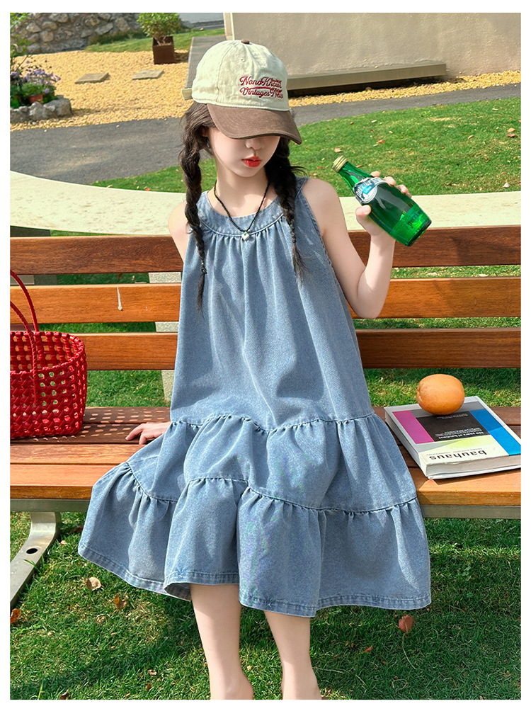 여자 데님 원피스 2025 여름 새 어린이 민소매 스커트 한국식 서양식 빈 스커트 데님 스커트스토어 가기