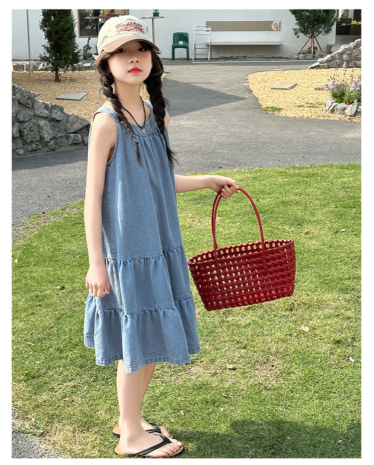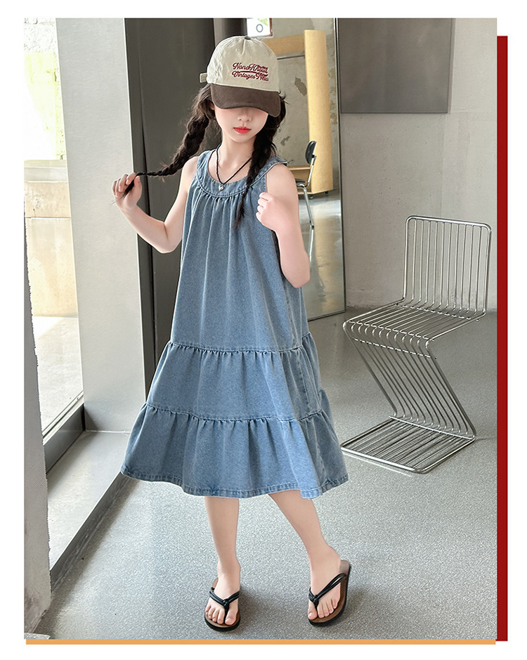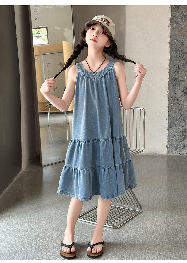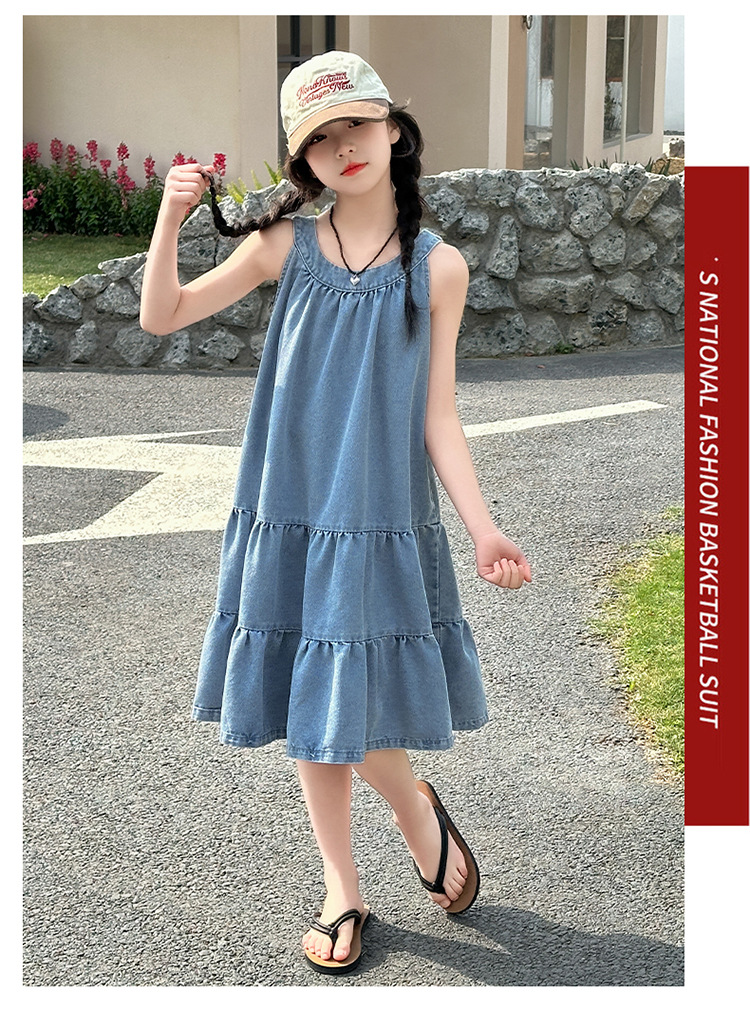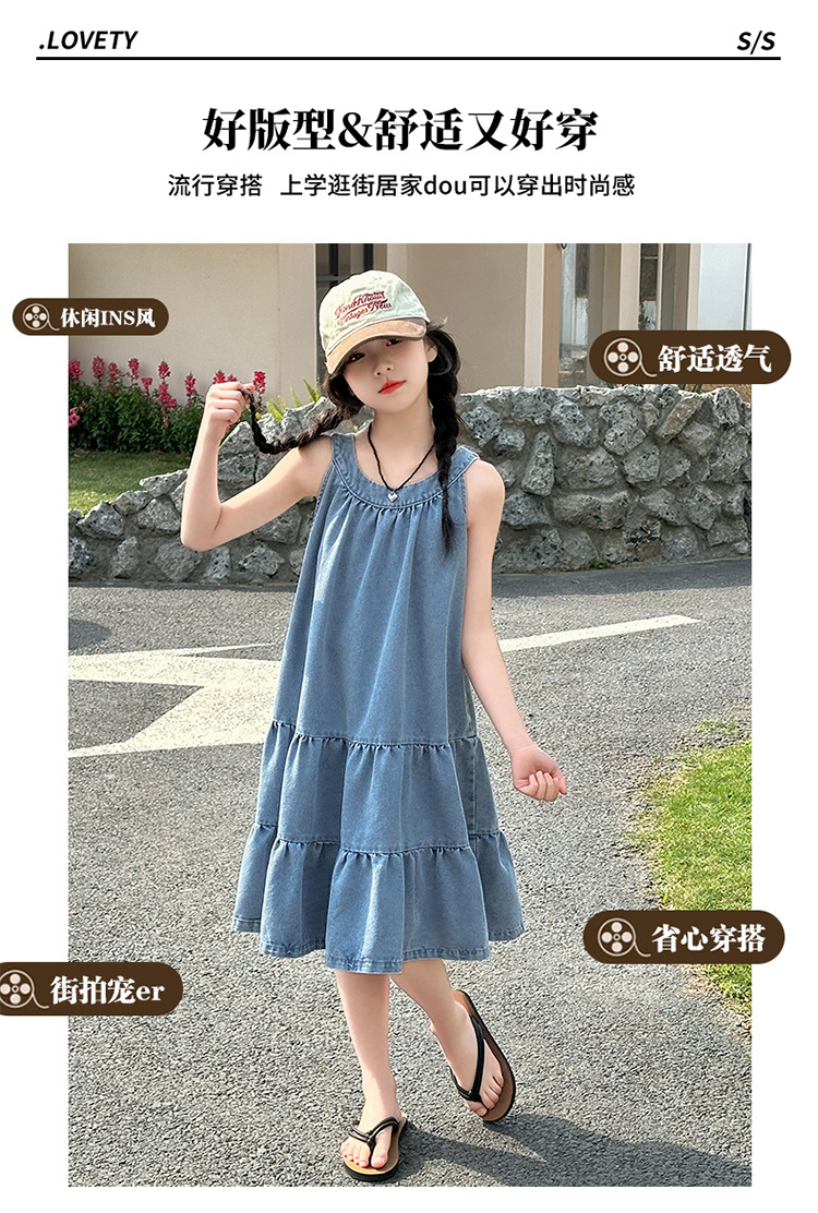 여자 데님 원피스 2025 여름 새 어린이 민소매 스커트 한국식 서양식 빈 스커트 데님 스커트스토어 가기