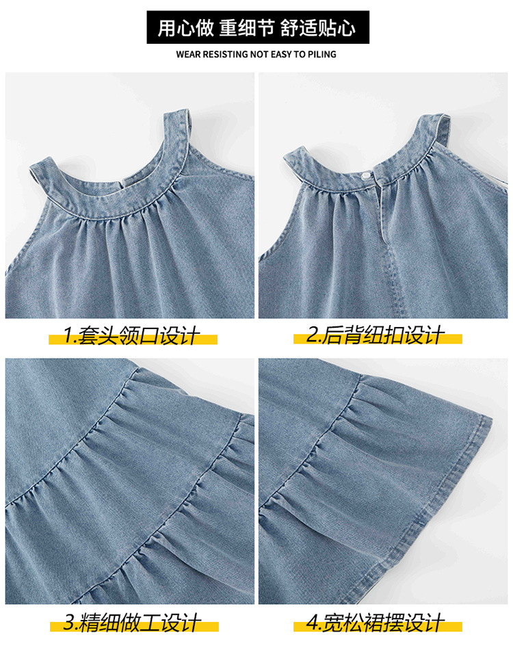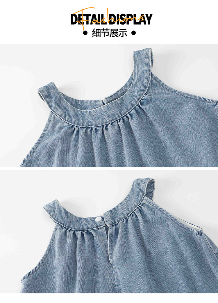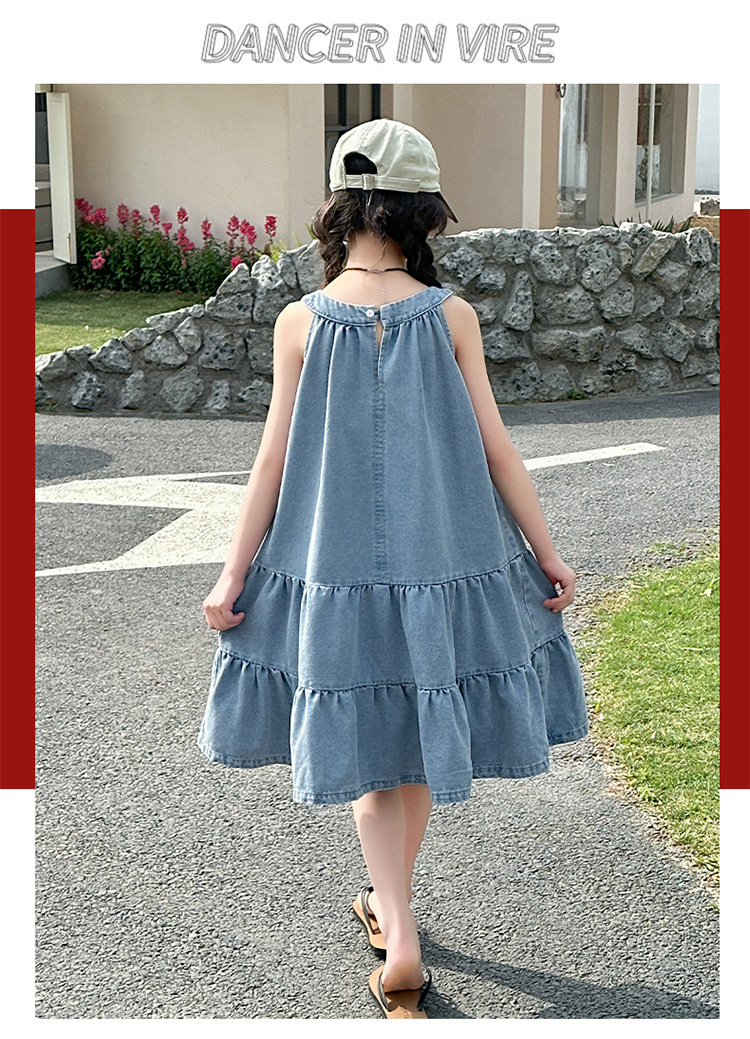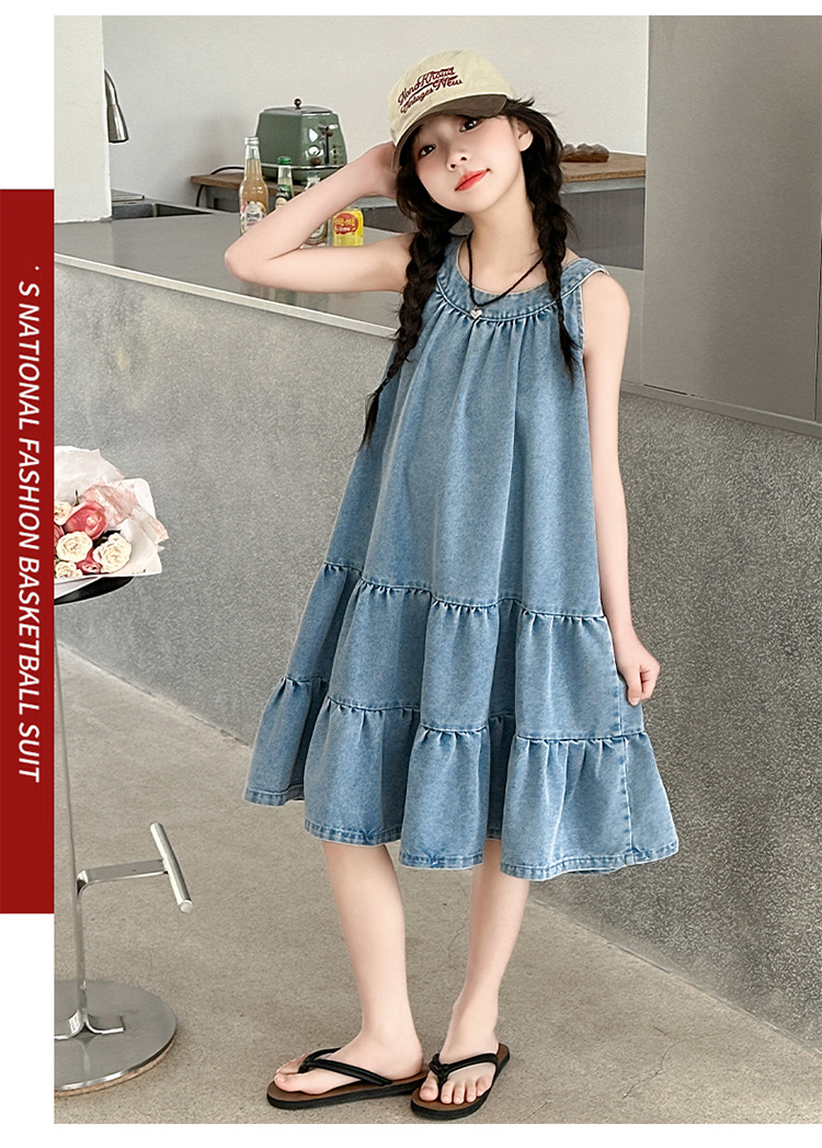 여자 데님 원피스 2025 여름 새 어린이 민소매 스커트 한국식 서양식 빈 스커트 데님 스커트