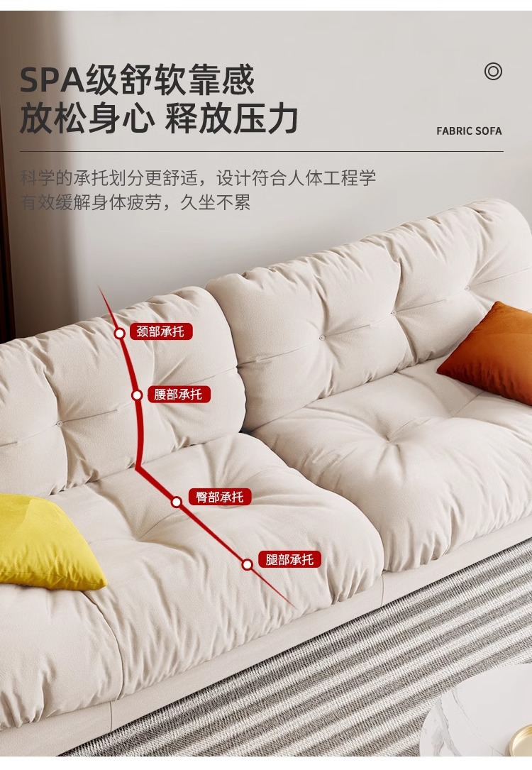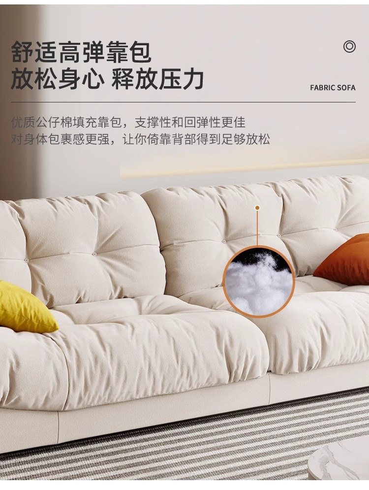 현대적인 심플한 크림 스타일의 거실 북유럽 가벼운 럭셔리 코끼리 귀 작은 아파트 직선형 기술 패브릭 클라우드 소파스토어 가기