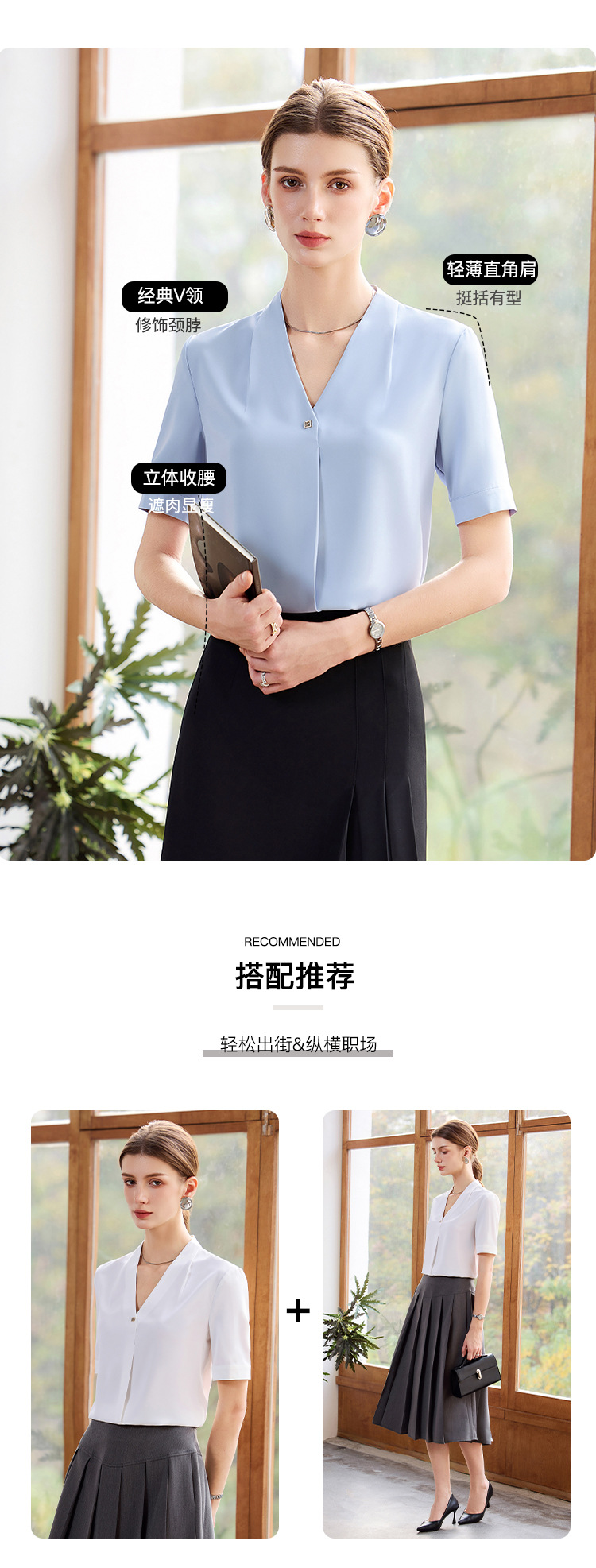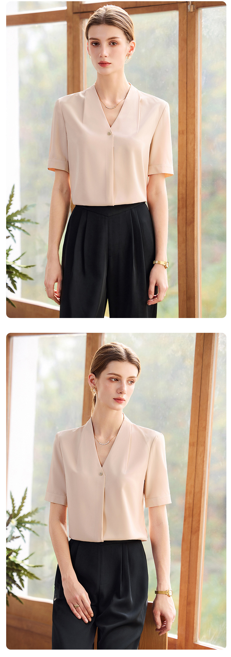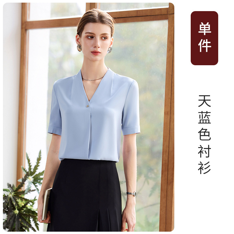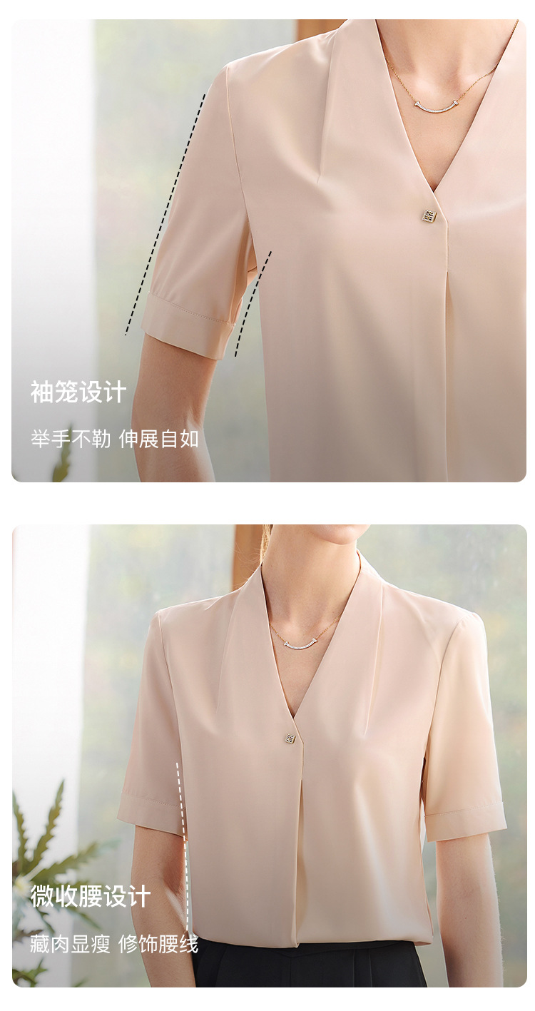 패션 캐주얼 반팔 셔츠 여성용 여름 얇은 V 넥 쉬폰 셔츠 탑 우아한 통근 비즈니스 셔츠 셔츠스토어 가기