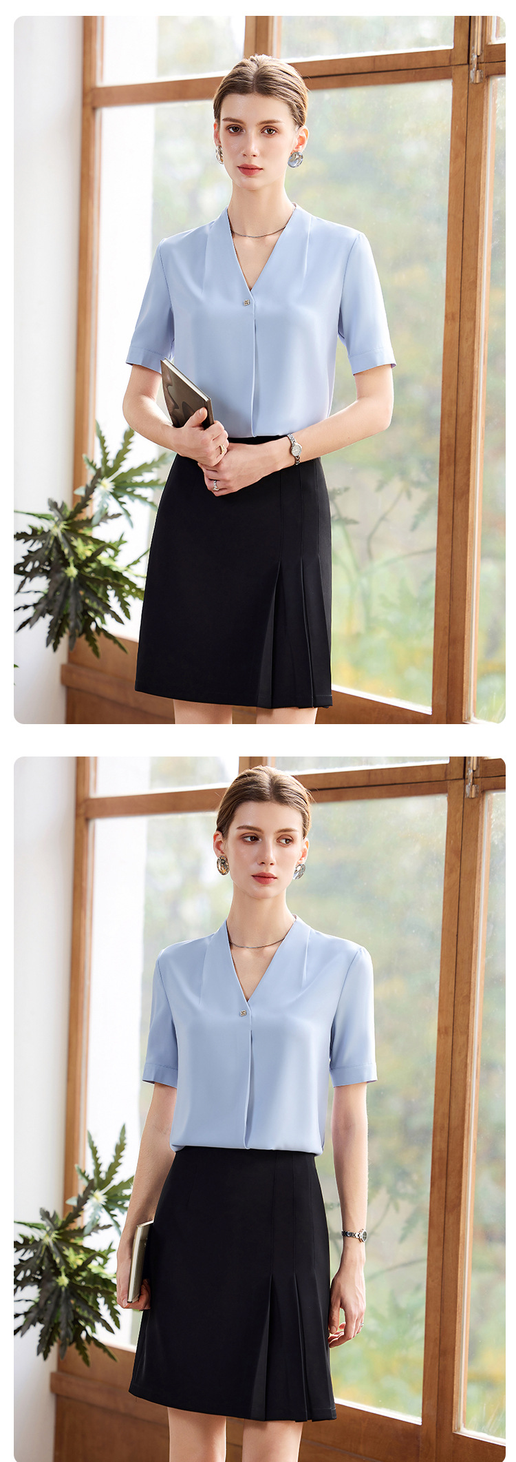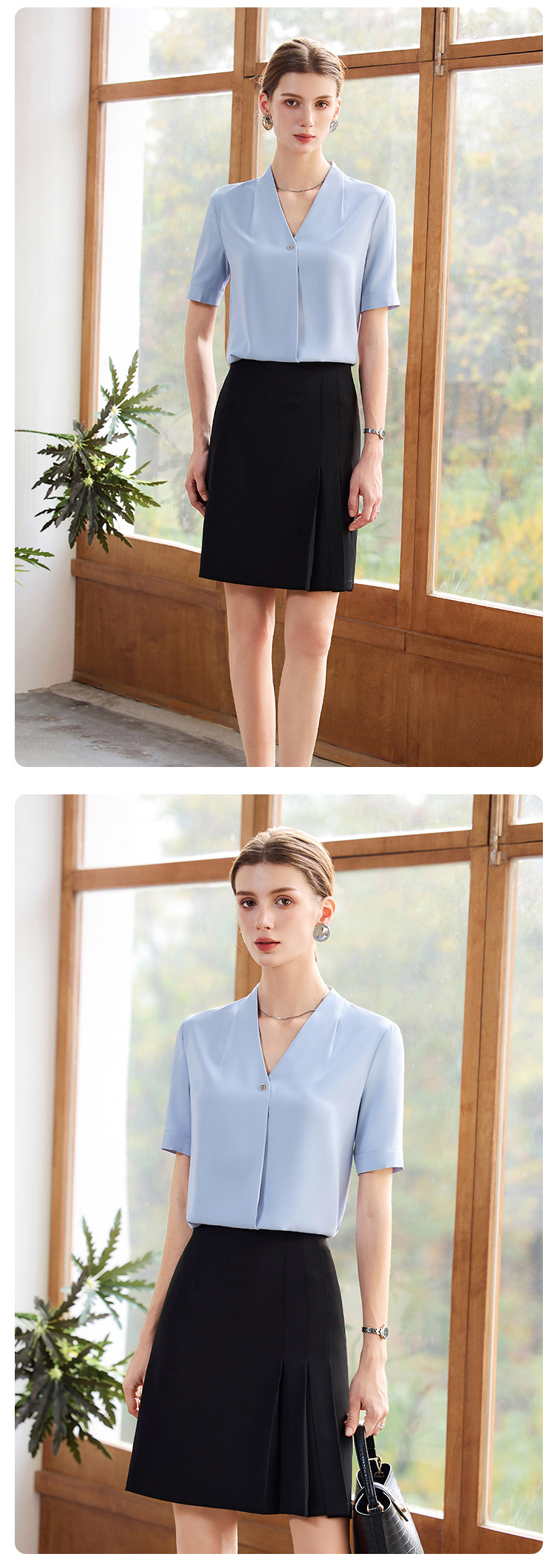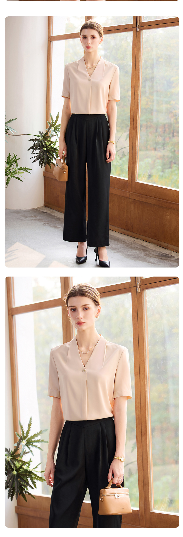 패션 캐주얼 반팔 셔츠 여성용 여름 얇은 V 넥 쉬폰 셔츠 탑 우아한 통근 비즈니스 셔츠 셔츠스토어 가기