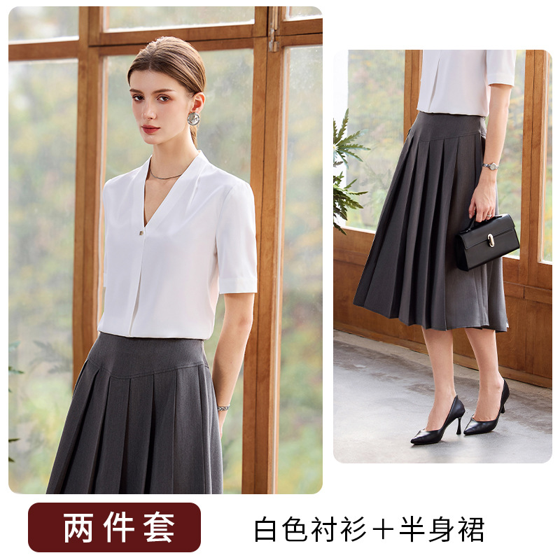• 흰색 반팔 셔츠 + 25329 회색 스커트