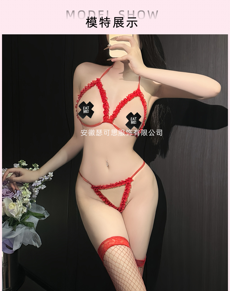 성인 섹시 란제리 빅 레드 레이스 핫 3점 레이스 업 비키니 본디지 파자마 세트 크로스보더 4123