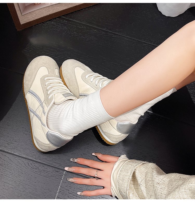 [아마노] 폭발 플랫 포레스트 검프 신발 여성 2025 년 새 봄 실버 화이트 신발 통기성 스포츠 여성 신발