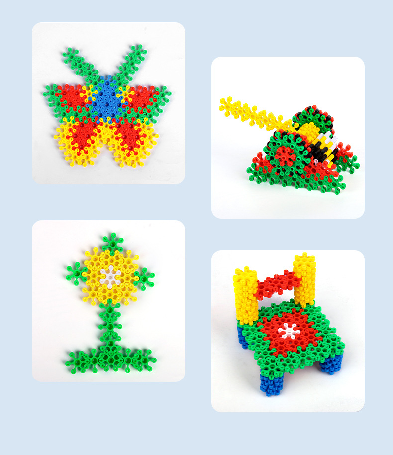 유치원 작은 입자 교육 플라스틱 매화 꽃 육각형 빌딩 블록 삽입 3 차원 컬러 필름 조기 교육 어린이 데스크탑 장난감