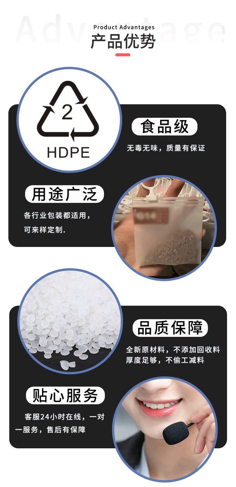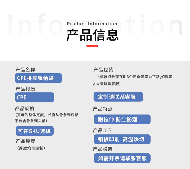 재고 스트레이트 헤어 CPE 프로스트 투명 콩 링 지퍼 백 스토리지 서브 포장 플라스틱 백 두꺼운 먼지 방지 및 습기 방지