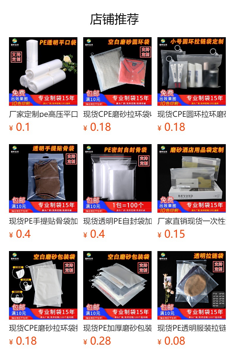 재고 스트레이트 헤어 CPE 프로스트 투명 콩 링 지퍼 백 스토리지 서브 포장 플라스틱 백 두꺼운 먼지 방지 및 습기 방지스토어 가기