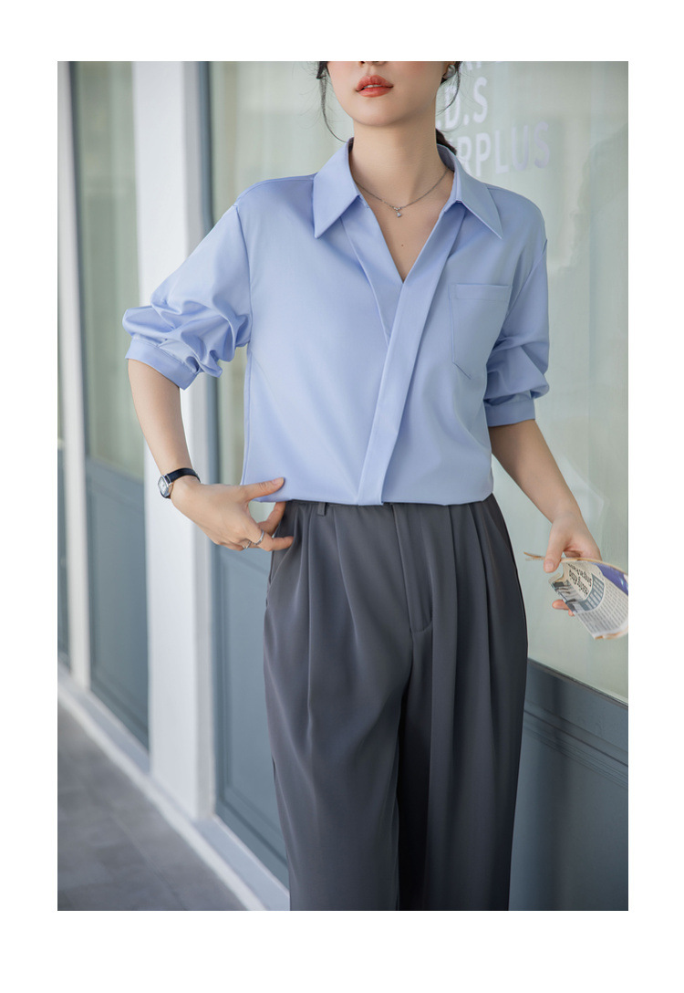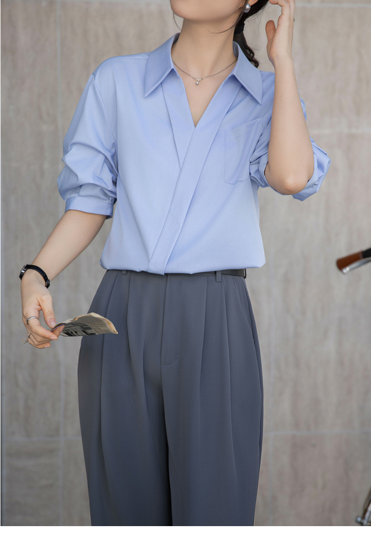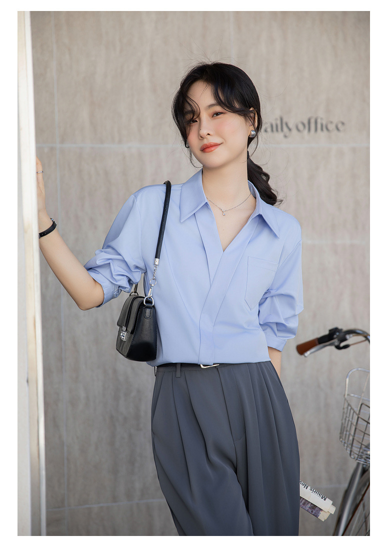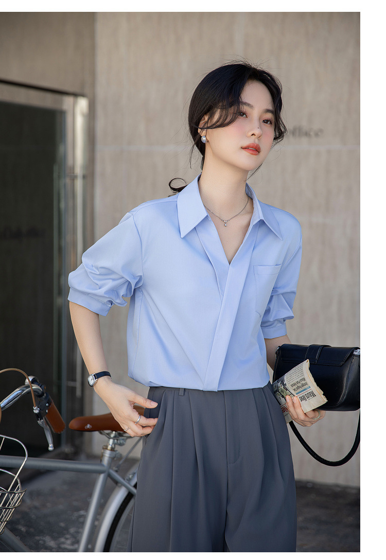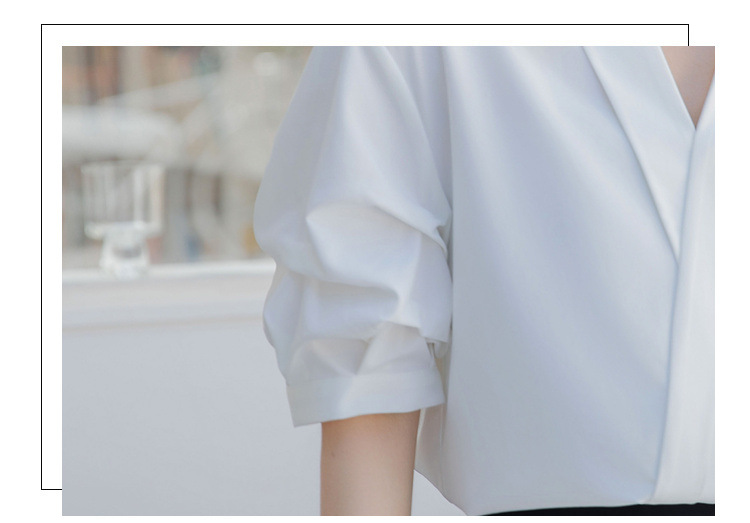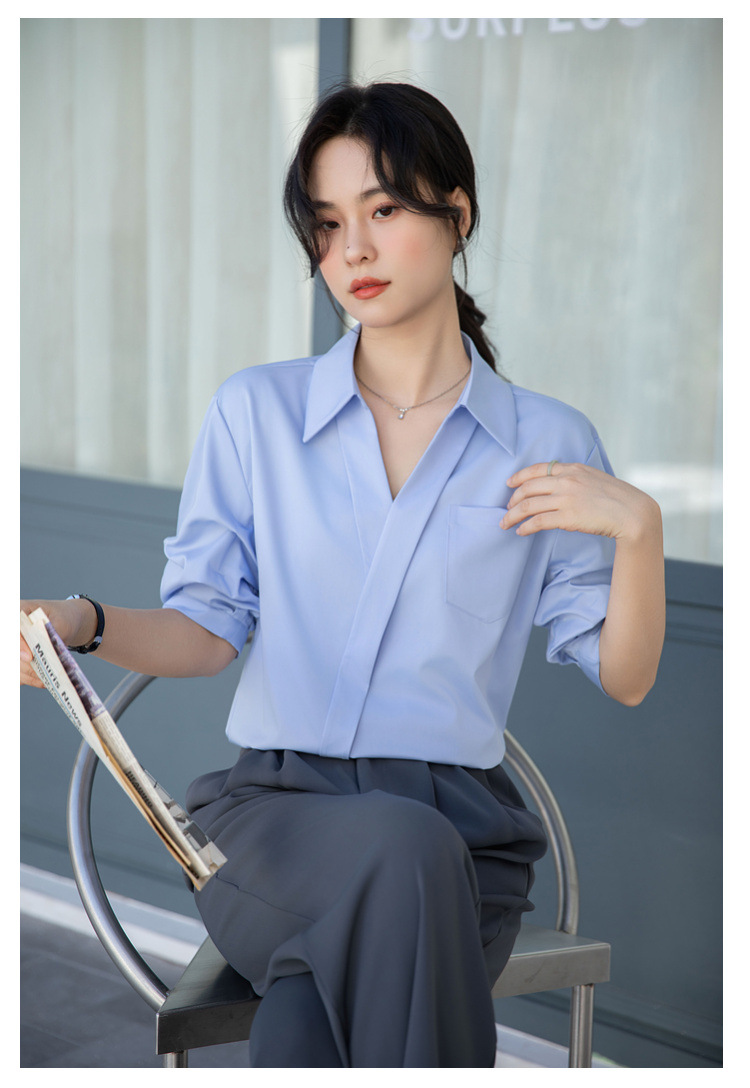 여성용 화이트 셔츠 2025 여름 새 스타일 캐주얼 루즈 전문 프렌치 니치 탑 v 넥 반팔 셔츠
