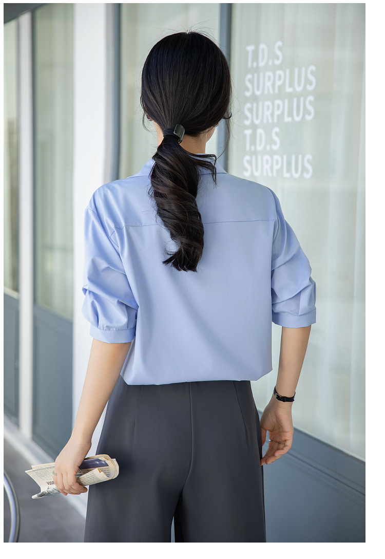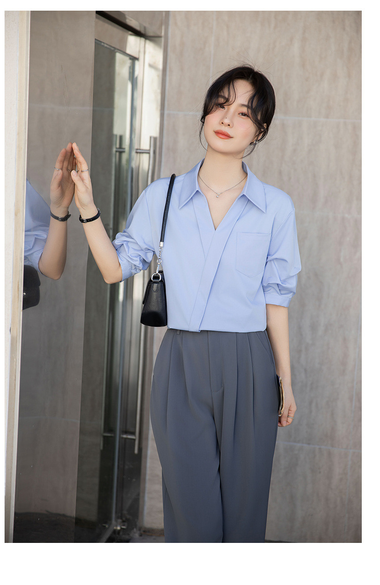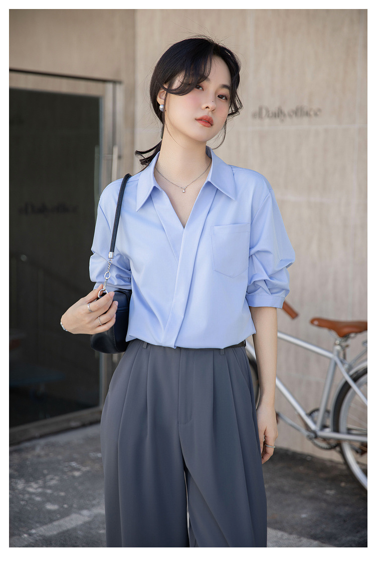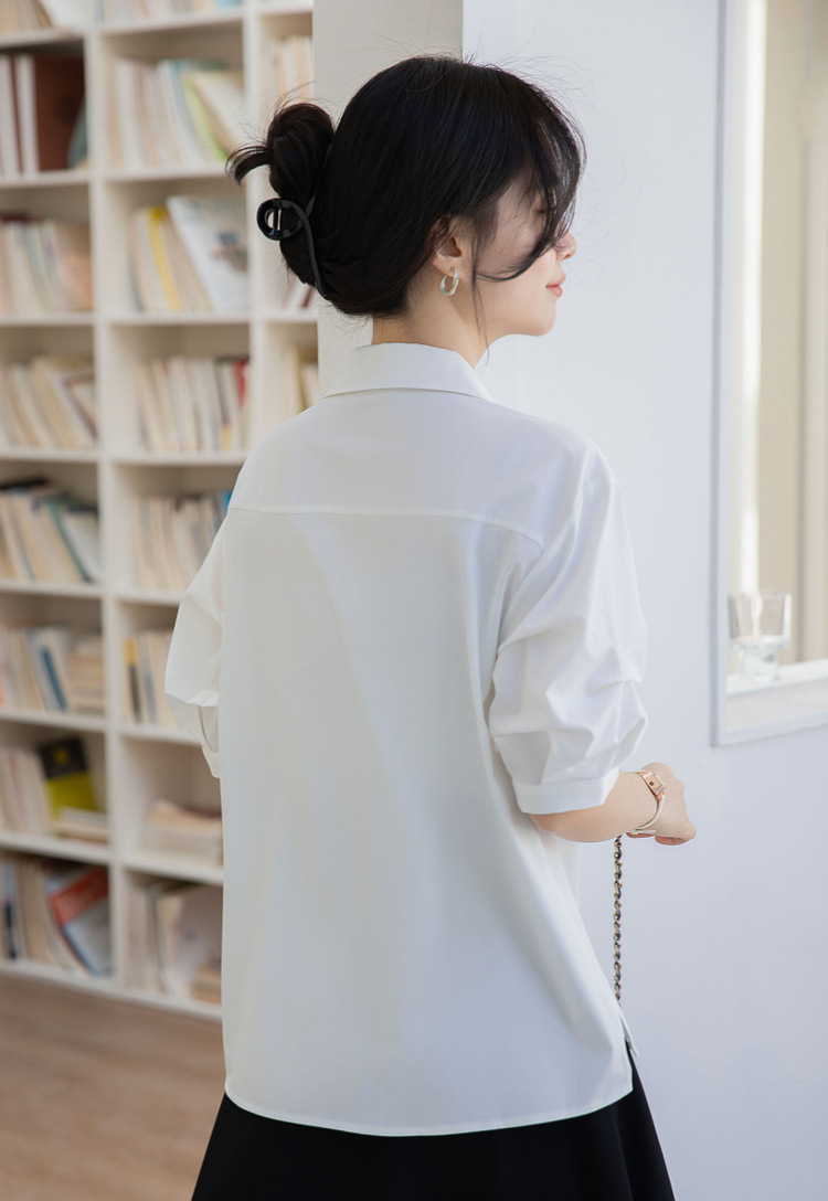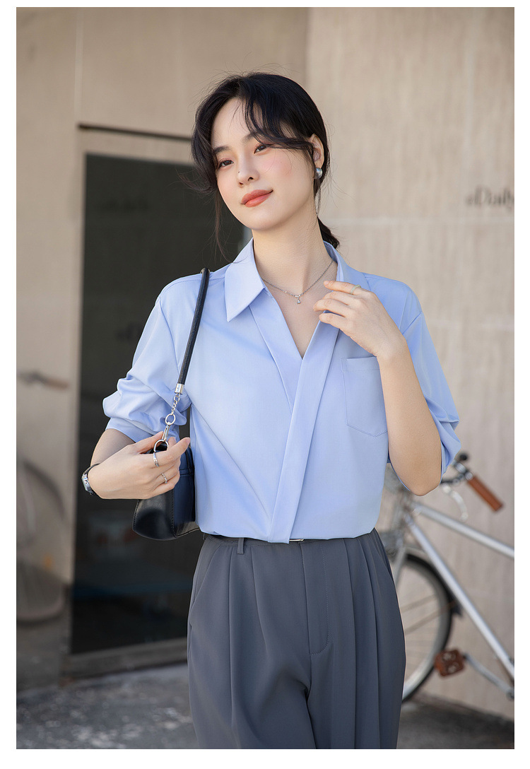여성용 화이트 셔츠 2025 여름 새 스타일 캐주얼 루즈 전문 프렌치 니치 탑 v 넥 반팔 셔츠스토어 가기