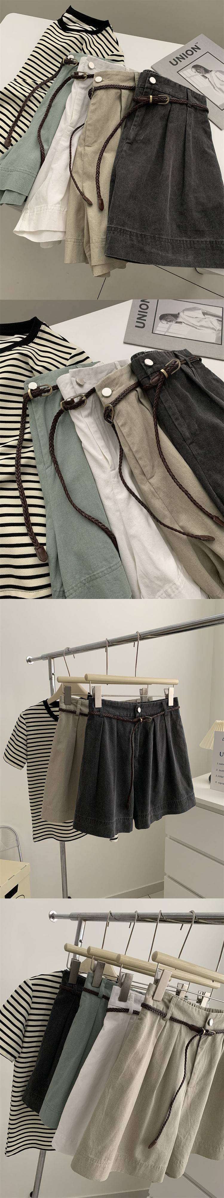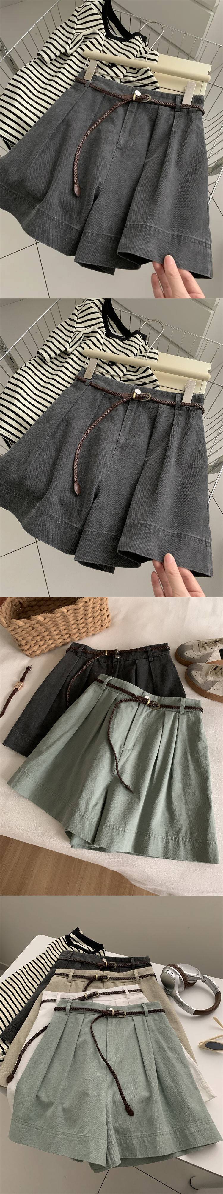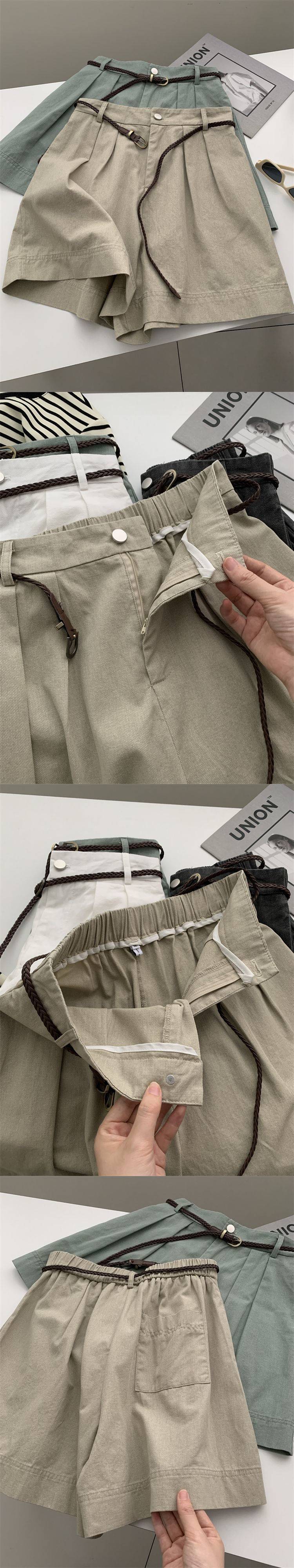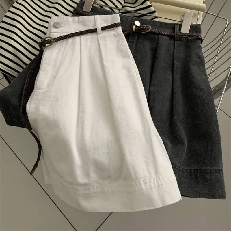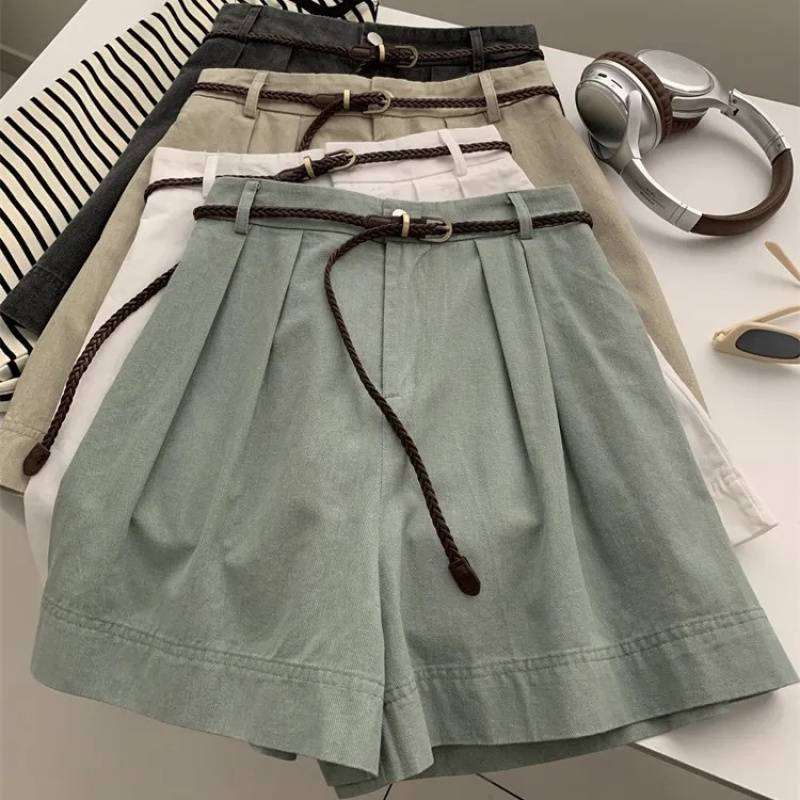 오래 된 문자 높은 허리 넓은 다리 반바지 여성 벨트 여름 느슨한 슬리밍 유행 올 매치 캐주얼 바지 유행스토어 가기