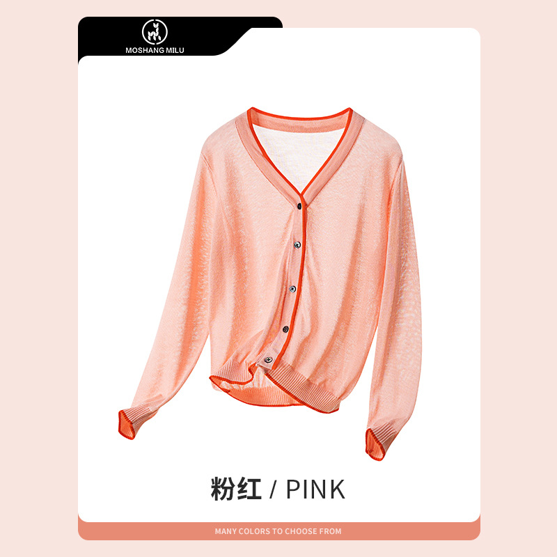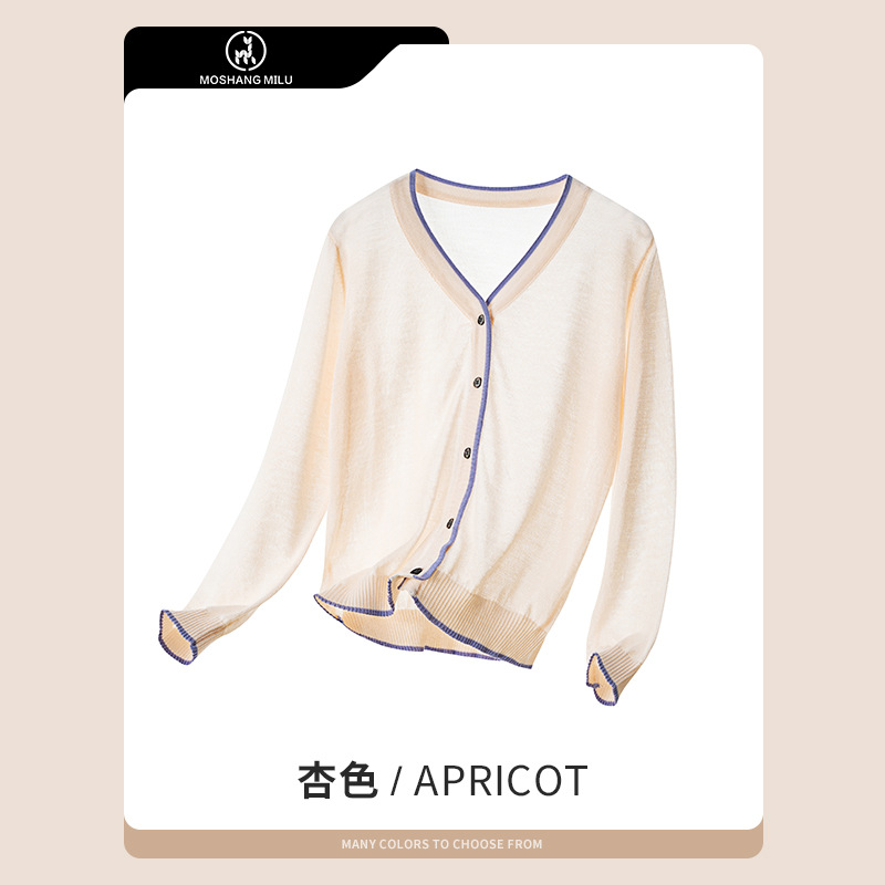 2025 아동복 여름 자외선 차단 의류 텐셀 여름 의류 새로운 스타일 소년과 소녀 대비 색상 에어컨 셔츠 얇은 니트 가디건스토어 가기