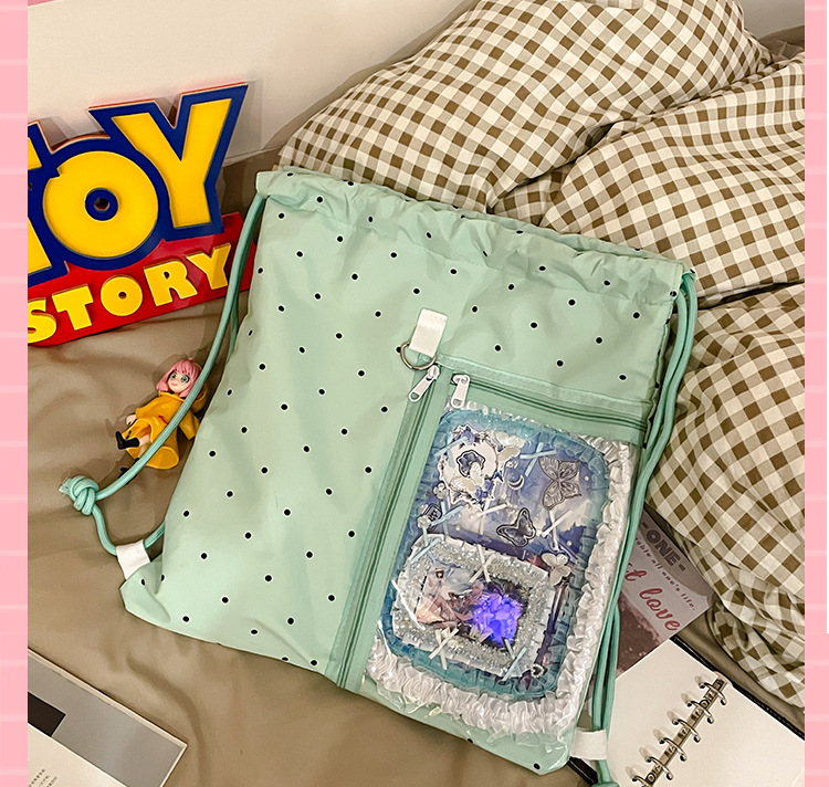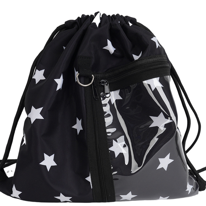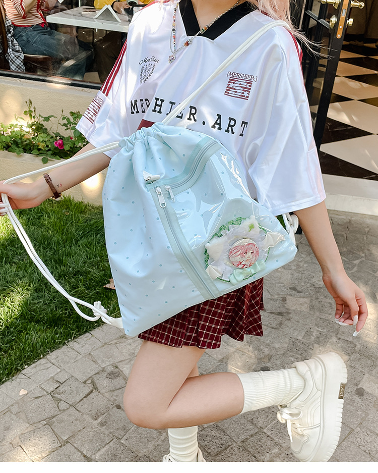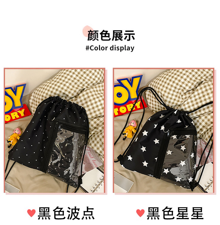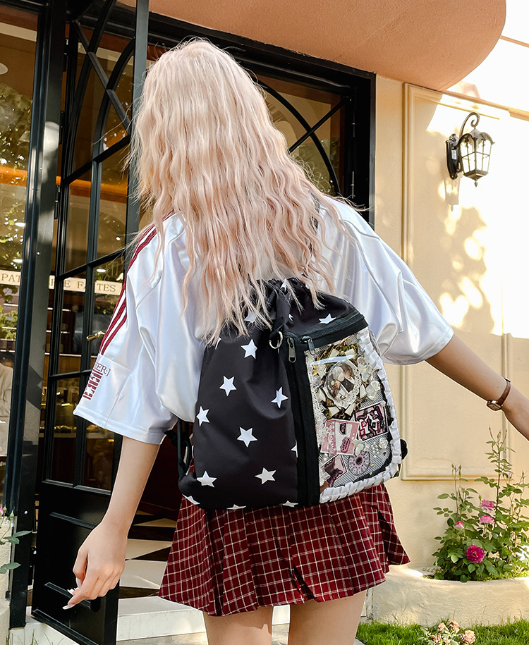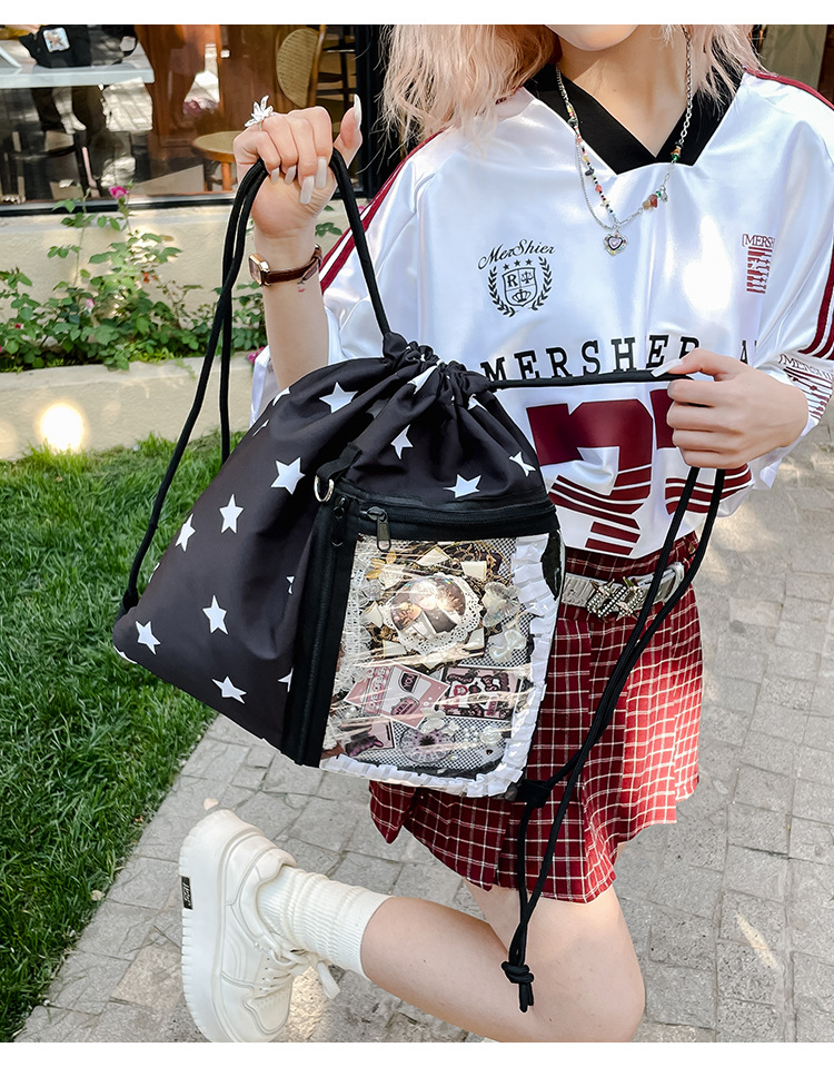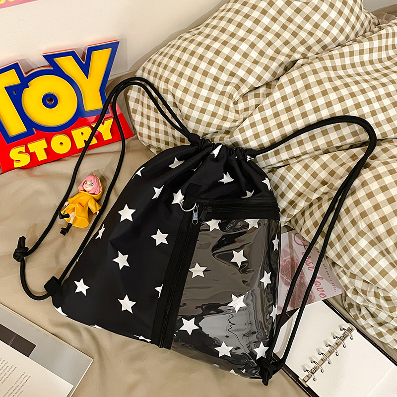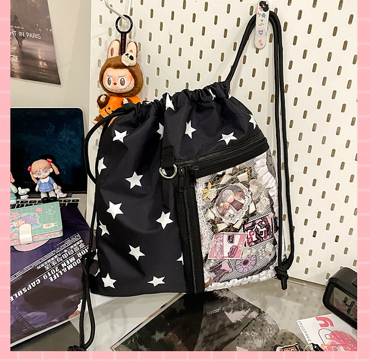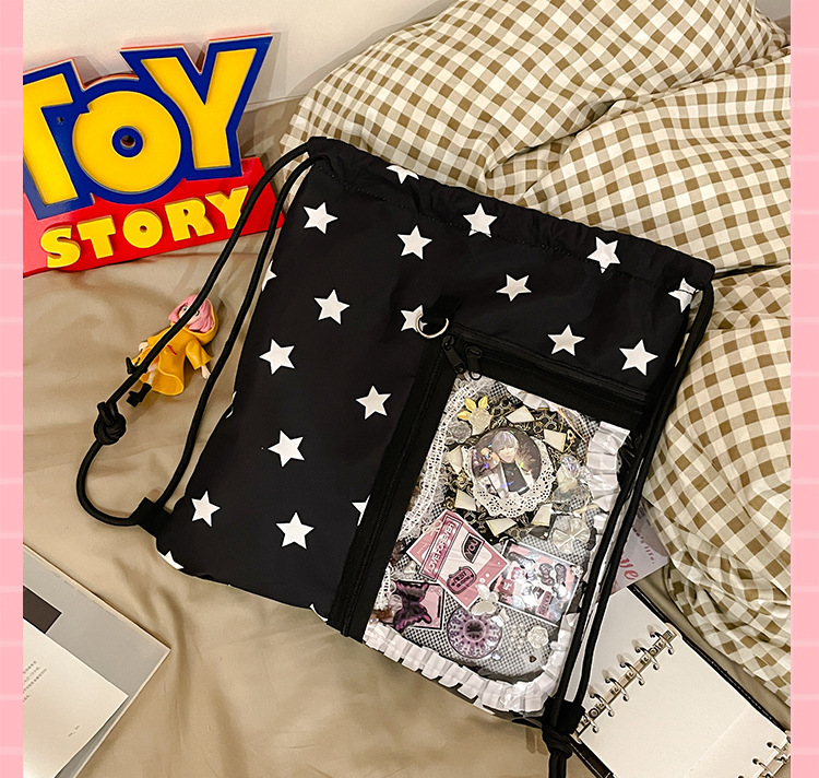 Drawstring 대용량 틈새 귀여운 2 차원 통증 가방 웨이브 포인트 5 점 별 인쇄 통근 빔 배낭