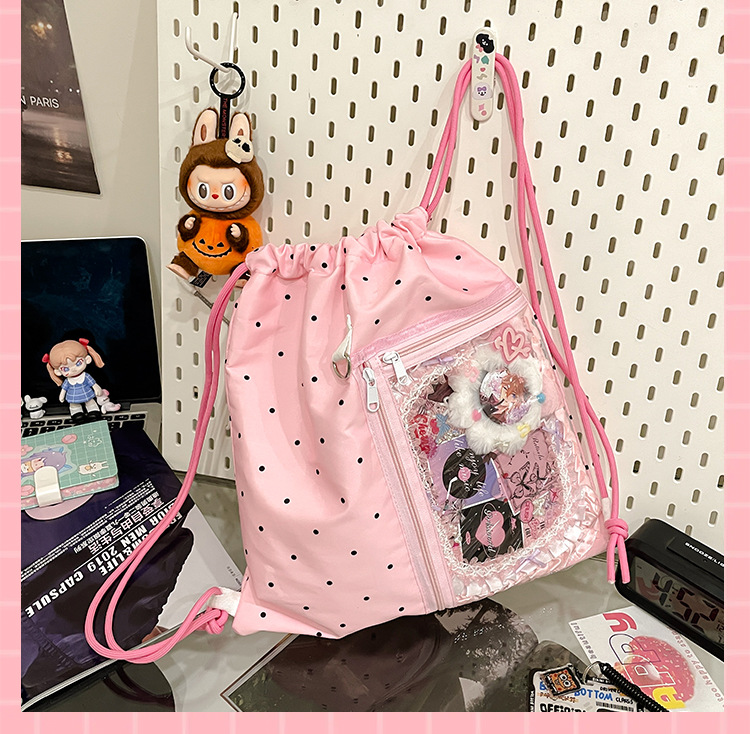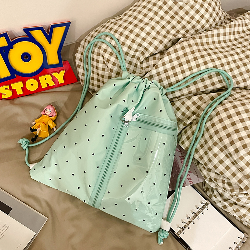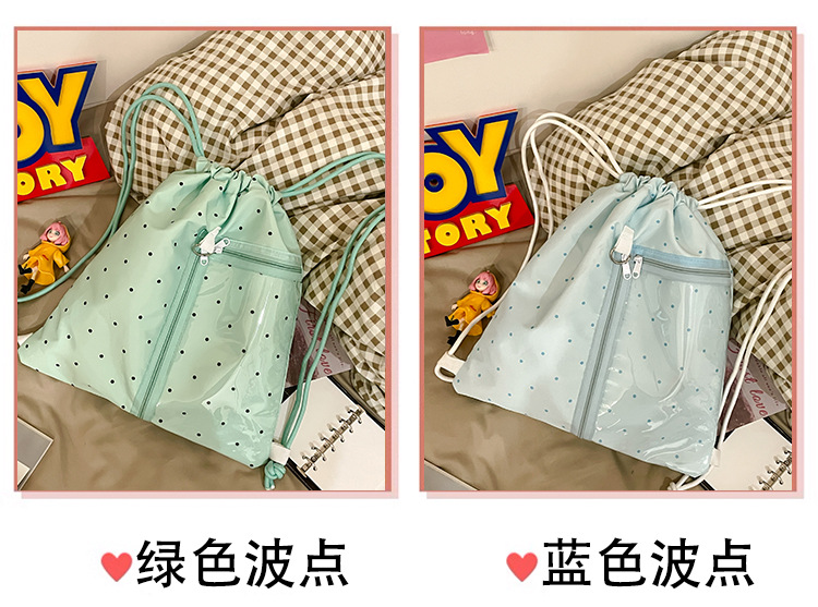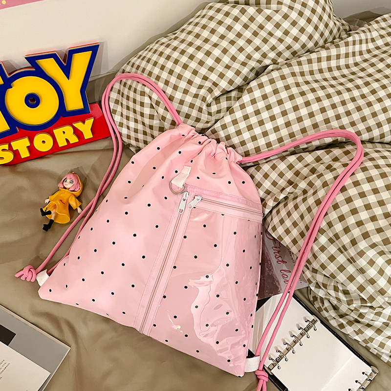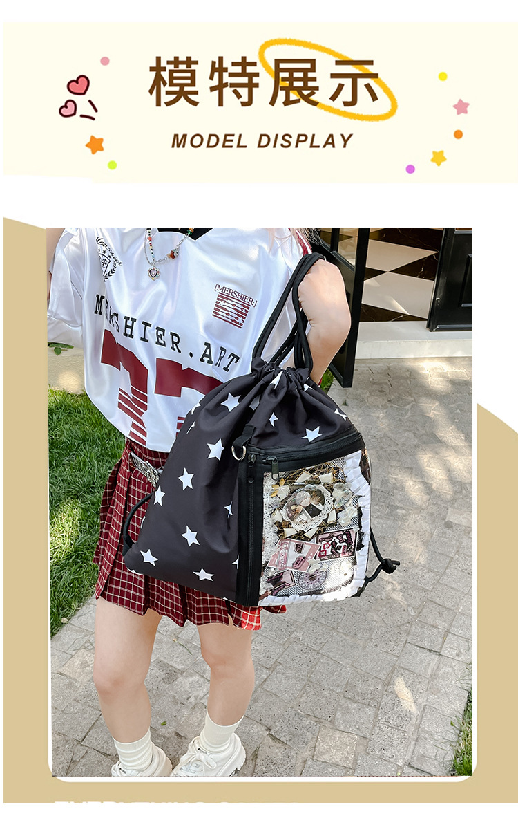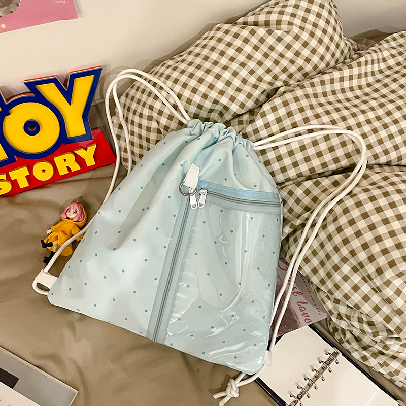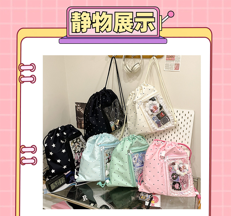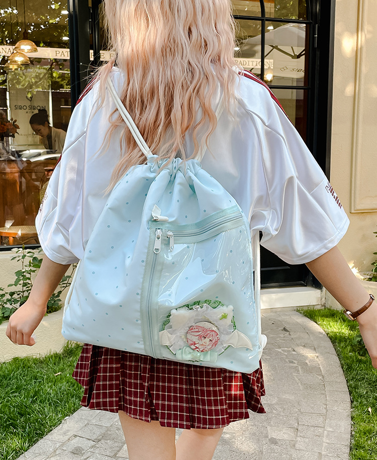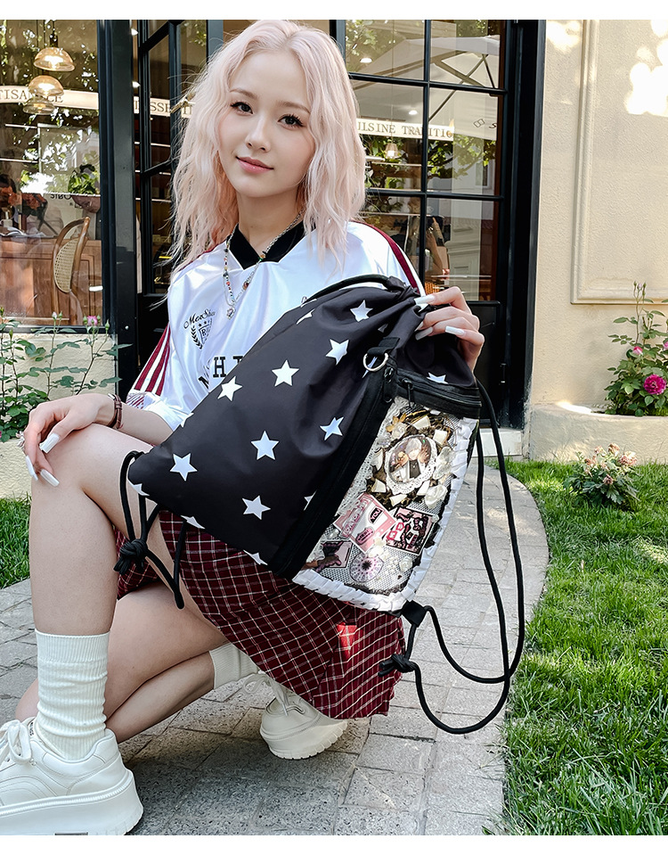 Drawstring 대용량 틈새 귀여운 2 차원 통증 가방 웨이브 포인트 5 점 별 인쇄 통근 빔 배낭