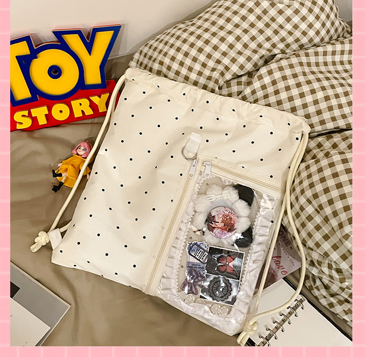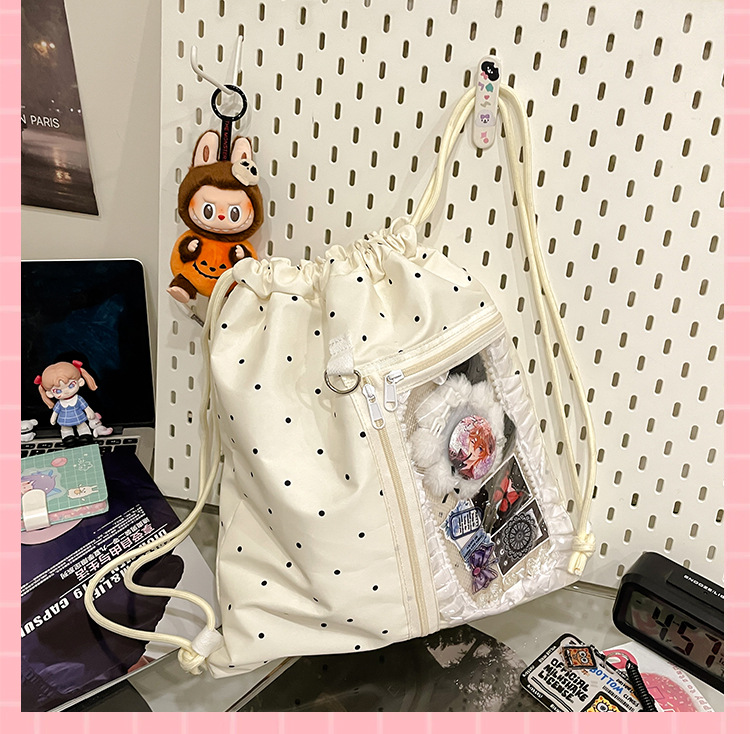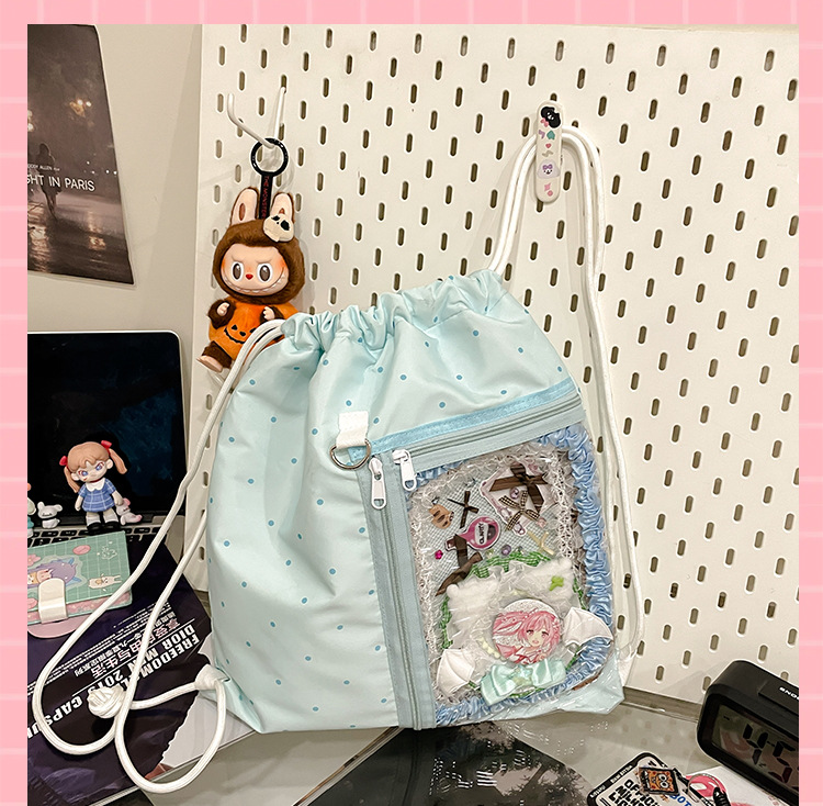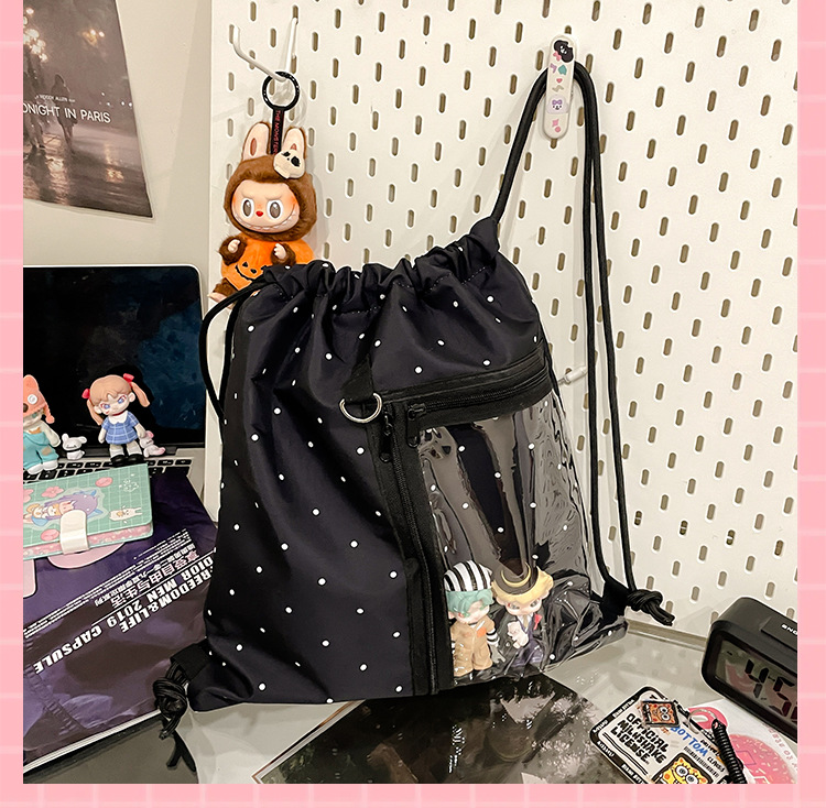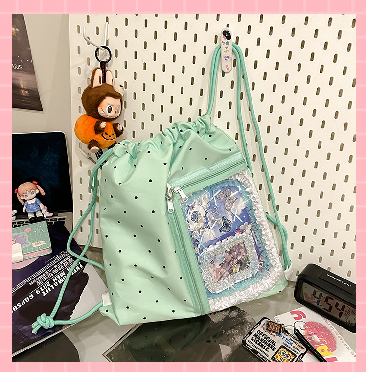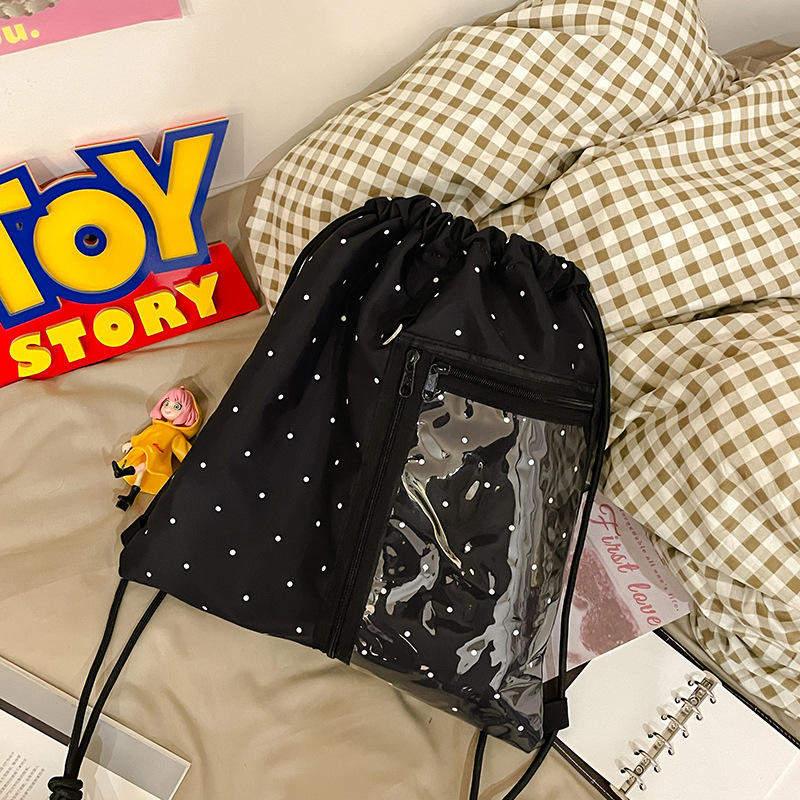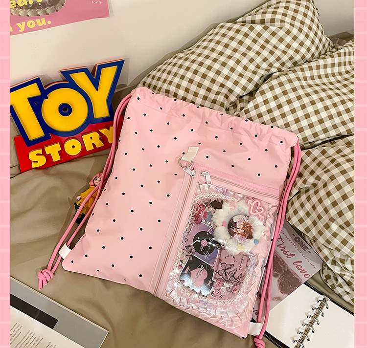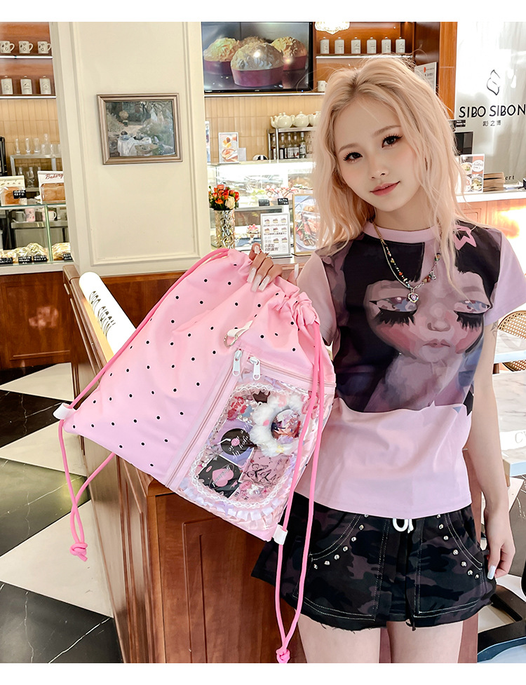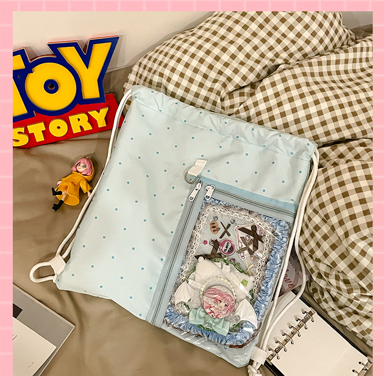 Drawstring 대용량 틈새 귀여운 2 차원 통증 가방 웨이브 포인트 5 점 별 인쇄 통근 빔 배낭