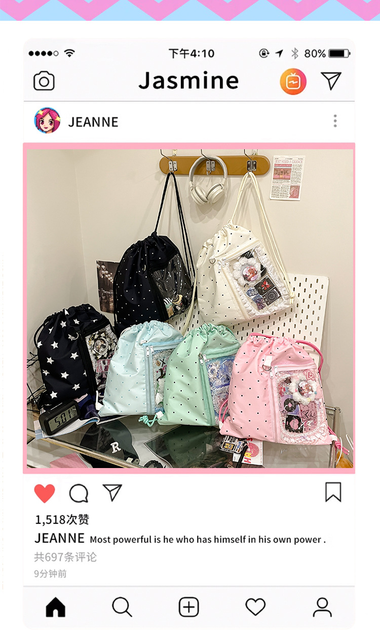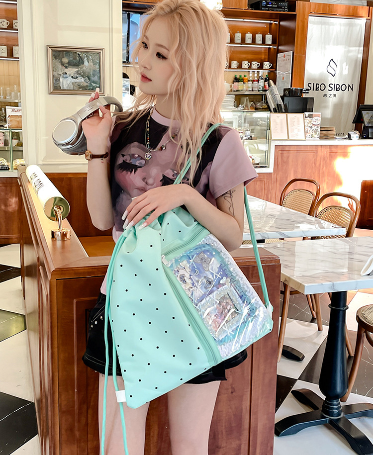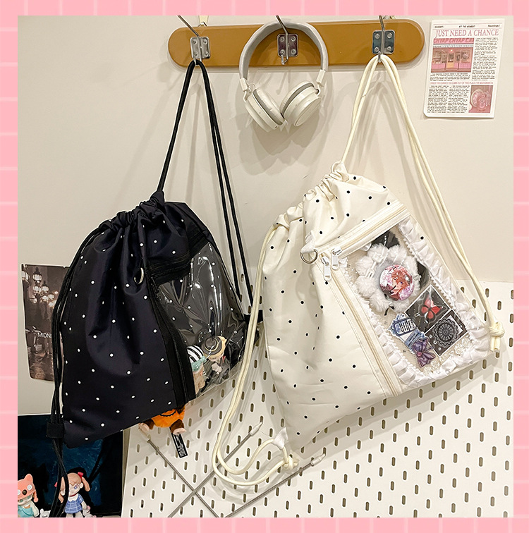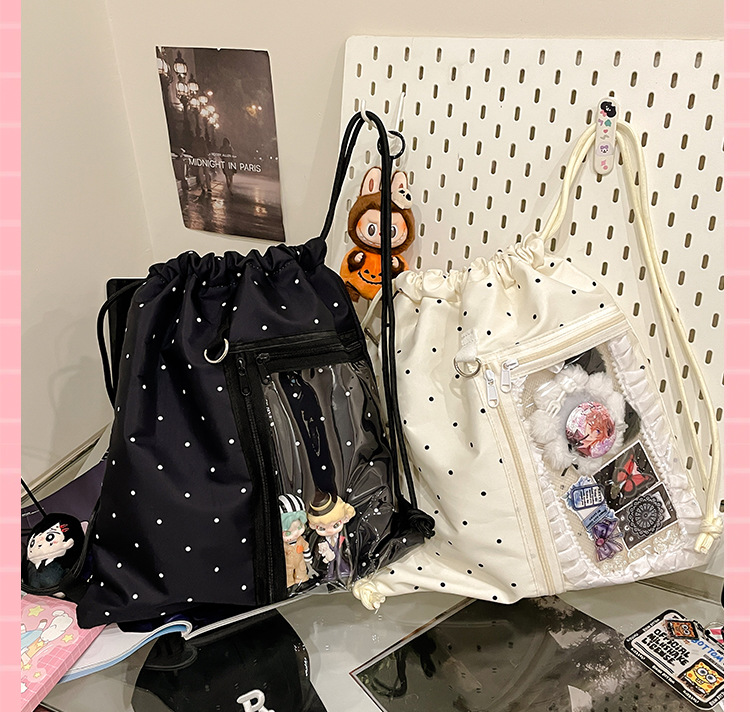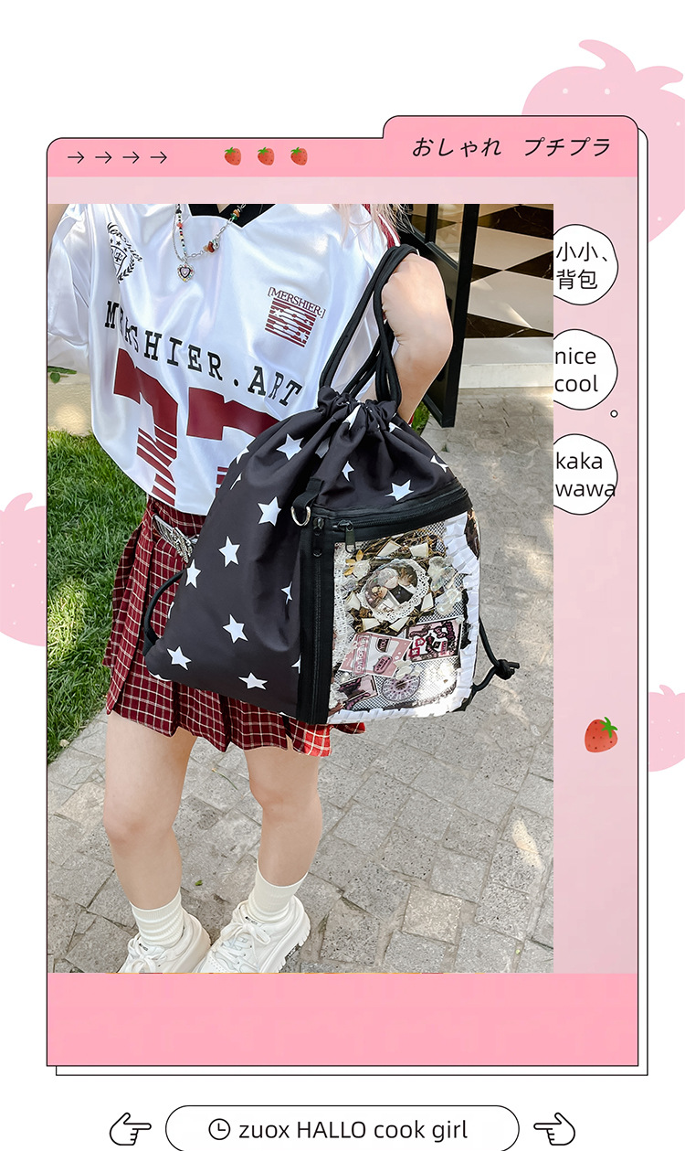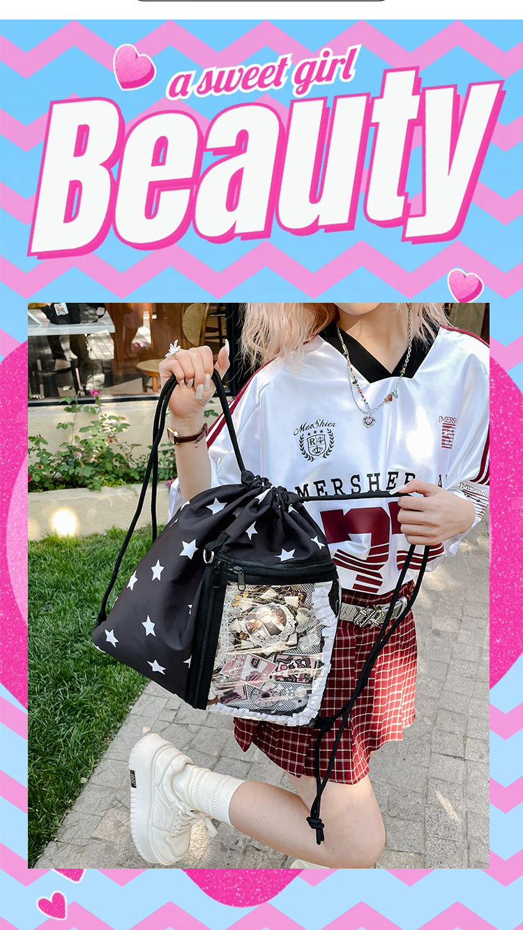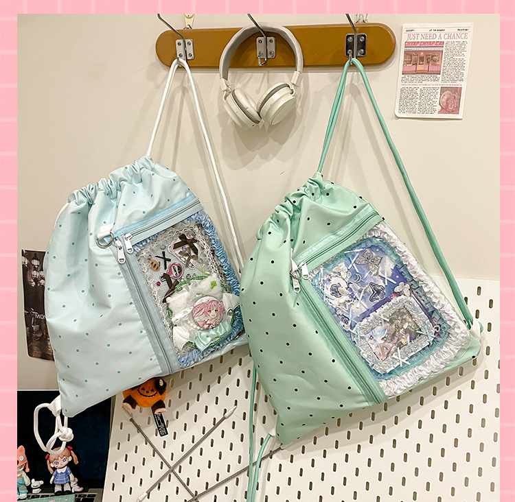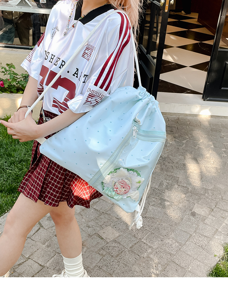 Drawstring 대용량 틈새 귀여운 2 차원 통증 가방 웨이브 포인트 5 점 별 인쇄 통근 빔 배낭